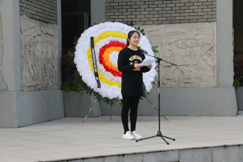 青山映忠魂,鲜花寄哀思。学生代表向革命烈士纪念碑敬献花篮,全体师生向革命烈士默哀1分钟。同学们献上亲手制作的一朵朵小花,寄托我们的衷思。在烈士纪念碑前,学生代表致词,表达一代青年学子对祖国的热爱、对革命先烈的崇敬之情,以及对十八岁成熟和承担的感悟。接着,两校区参加成人宣誓的同学,分别在团委书记的带领下,面向国旗,庄严宣誓。