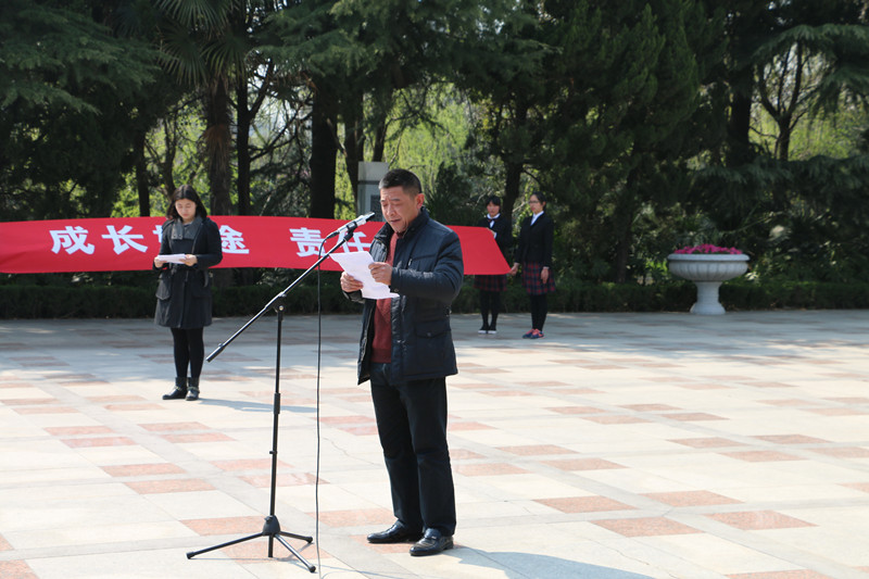 “成长始途,责任在肩”,在革命先烈缔造的新中国的阳光下,在神圣庄严的烈士纪念碑前,我们崇敬,我们立志,我们创造。相信同学们定能牢记今天的誓言,开拓进取、创造辉煌。
