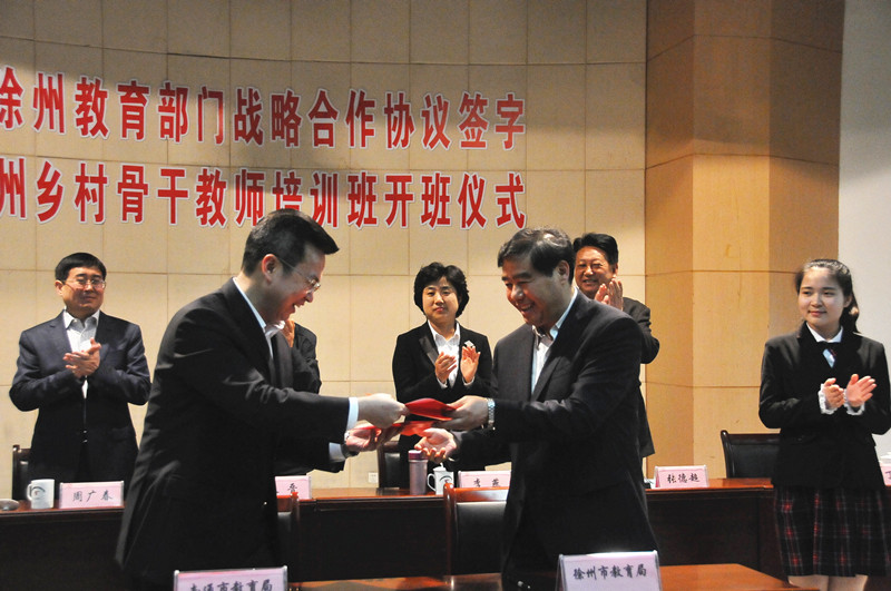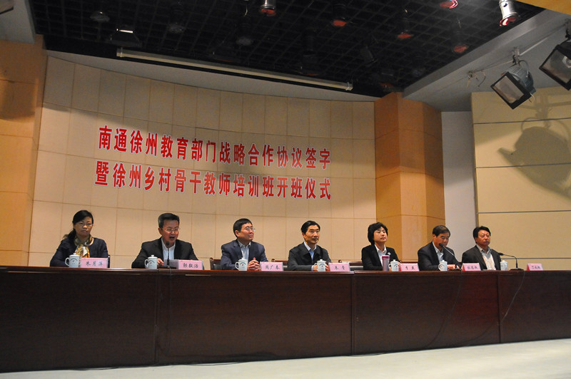 4月15日,徐州、南通教育部门战略合作协议签字暨徐州乡村骨干教师培训班在我校正式开班。会上,两地政府副市长李燕和朱晋同志共同为“徐州教育培训基地南通学苑”揭牌。首批80名来自徐州的乡村语文教师将在我校接受为期10天的培训。期间,著名儿童教育家、情境教育创始人李吉林,国家督学、中国教育学会素质教育实验区指导专家成尚荣,教育部语文课程标准研制专家组成员、语文特级教师陆志平,苏州大学教授、复旦大学博士后陈国安,我国“田园教育”的倡导者、哲学博士李庆明等近20位知名教育专家将为培训班学员授课或交流。