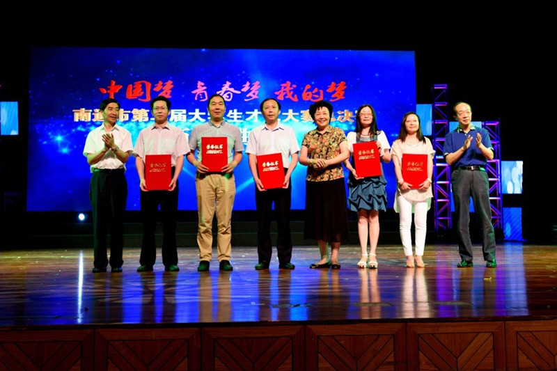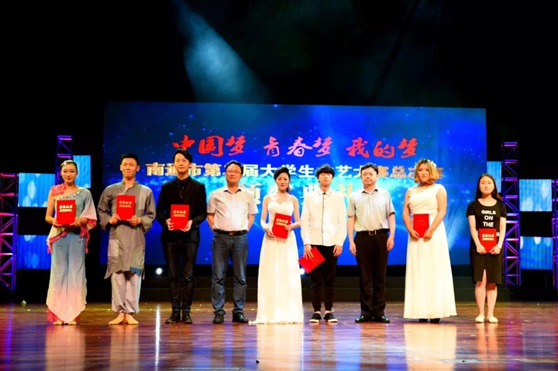 6月19日下午,由中共南通市委宣传部、南通市教育局、共青团南通市委、南通广播电视台共同主办的“中国梦·青春梦·我的梦”南通市大学生才艺大赛在南通更俗剧院圆满落幕。市人大常委会副主任程静、市政府副市长朱晋、市政协副主席杨展里、市委宣传部副部长王一鸣、团市委书记葛志娟、南通广电传媒集团董事长、总裁,南通广播电视台台长张辉、市委宣传部机关党委书记谢小兵、市教育局副局长姜学勤、团市委副书记王鸣昊、南通广电传媒集团党委委员、副总经理李晓东,全市13所大中专院校的领导出席了颁奖典礼。