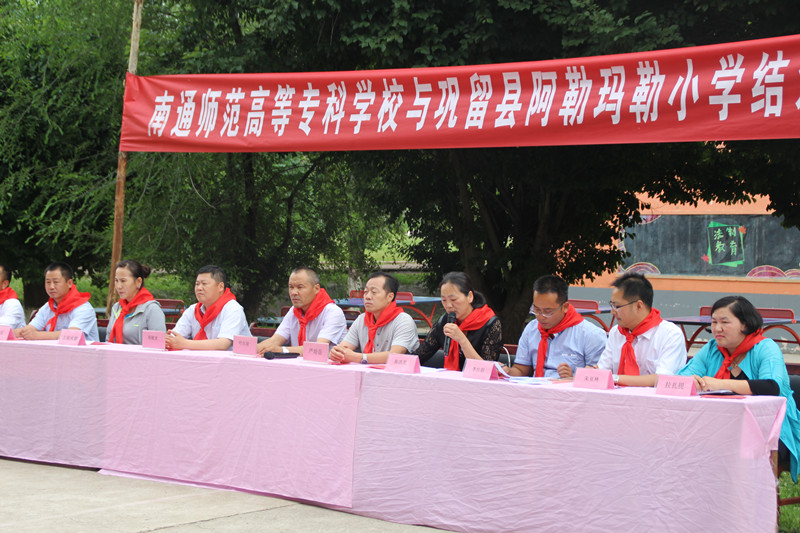 在阿勒玛勒小学结对共建仪式上,陈洪美馆长代表我校师生作了发言,向该校师生介绍了我校的情况,转达了我校领导和师生们的问候,鼓励同学们要努力克服眼前的困难,勤学苦练,发奋成才,延续爱心。