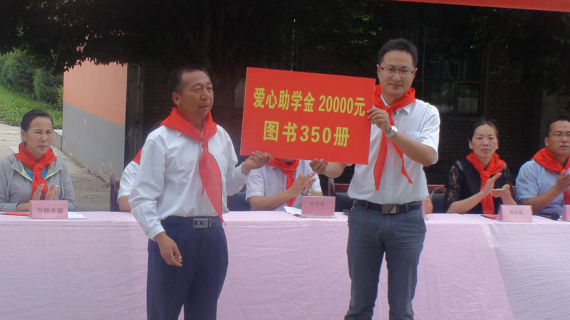 揭牌仪式结束后,周处长将2万元助学金及350册图书捐赠给了阿勒玛勒小学。同时,出席活动的领导向一等助学金受助学生现场发放助学金。阿勒玛勒小学受助学生代表也作了发言,她感谢这份来自远方的爱心,表示要铭记在心,化为自己学习的动力,在将来迈入社会之际,更好地为祖国为人民做出贡献。