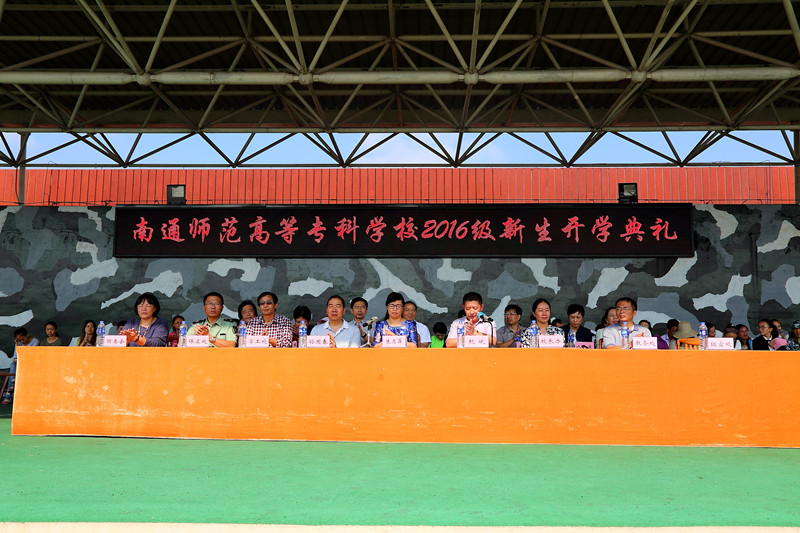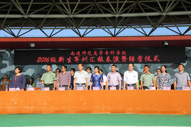 9月24日上午,我校2016级新生军训汇报暨开学典礼在南通市学生素质教育训练基地隆重举行,学校党委副书记、校长朱月萍,党委副书记、纪委书记杭斌,党委委员、副校长孙国春,各系及相关职能部门负责人出席典礼。