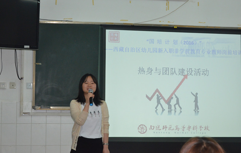 彭云副主任首先就国培班的课程安排与设置进行了解读,本次培训针对学员的实际情况,课程设置分为三大板块,即专业理念与师德、专业基础理论、基本技能,邀请校内外众多专家学者为学员们授课。徐汝成处长对班务管理和教务管理提出了具体要求并对后勤保障做了细致安排,殷切希望学员们在培训结束后能胜任学前教育教学工作。最后,潘建副校长简要介绍了我校的历史沿革和发展现状,并从融入集体、明确任务、付出最大努力、用成绩说话等四个方面对学员提出了期望和要求。简短的开班典礼后,培训科许冬云科长组织了精彩的破冰活动,“八分之一感觉”、“我们是一家”、“完蛋归赵”三个团队建设活动拉近了西藏不同地区学员的距离,增进了相互之间的了解,和谐了班级氛围。