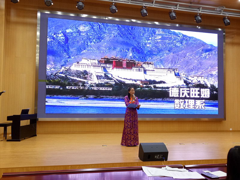 莅临此次比赛的有语言文字中心曹均平主任,人文系王兴明书记、沈燕书记、杨峰霞主任、梅云霞老师、徐莉老师等六名评委。比赛一开始,仲泽、吴蔚怡两位同学带来的《祖国啊,我亲爱的祖国》就点燃了现场的气氛。紧接着是信息16班陈天晓的《有的人》,那磁性的声音深情的诵读,树立了具有完美人格的公仆形象,使现场观众也深受其染,报以热烈的掌声。财务管理16班的全体同学整齐有序的朗诵,更是让人眼前一亮。而信息技术系张羽菲、王茜茜的《党是母亲我是儿子》慷慨激昂,让观众们听得如痴如醉。小教13班夏雨的《我用残损的手掌》展现了人文系同学的扎实的朗诵功底和对诗歌情感准确的把握,在场的评委和观众无不为之动容。音乐系16班同学带来的《党啊我们为您歌唱》如颂歌般庄严肃穆,以最真挚的情感,华美的语言,洪亮的嗓音,慷慨激昂的情调,把活动逐步推向高潮。美术系 15(1)班俞秋业用满腔的热血为我们展示对《祖国啊,我亲爱的祖国》的独特理解。而来自小学教育16专科班的德庆旺姆更是用浓浓的民族气息感染着在场的每一位观众,她带来的《祖国在我心中》让我们感受到了一股别样的爱国之情。