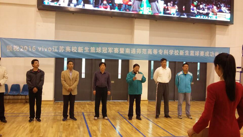 开幕式由体育教育教研室主任黄卫兵老师主持,系副主任姜慧钧老师代表系部致开幕词,要求全体运动员赛出水平、赛出风格,充分体现当代大学生的顽强拼搏,积极上进的精神面貌。对“VIVO”公司的大力支持表示感谢并预祝本次比赛获得圆满成功。随后系主任曹科枢老师宣布体育系首届“VIVO”大学生篮球赛开幕。