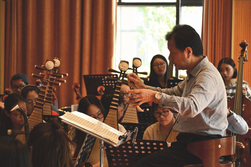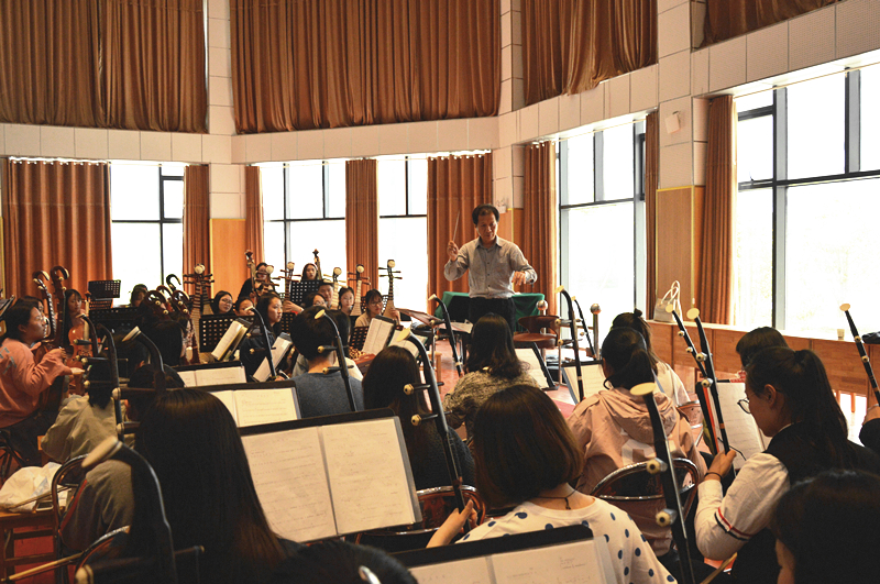 4月24日下午江苏省民族乐团团长,著名作曲家、指挥家王爱康老师莅临音乐系指导民族乐团的排练。