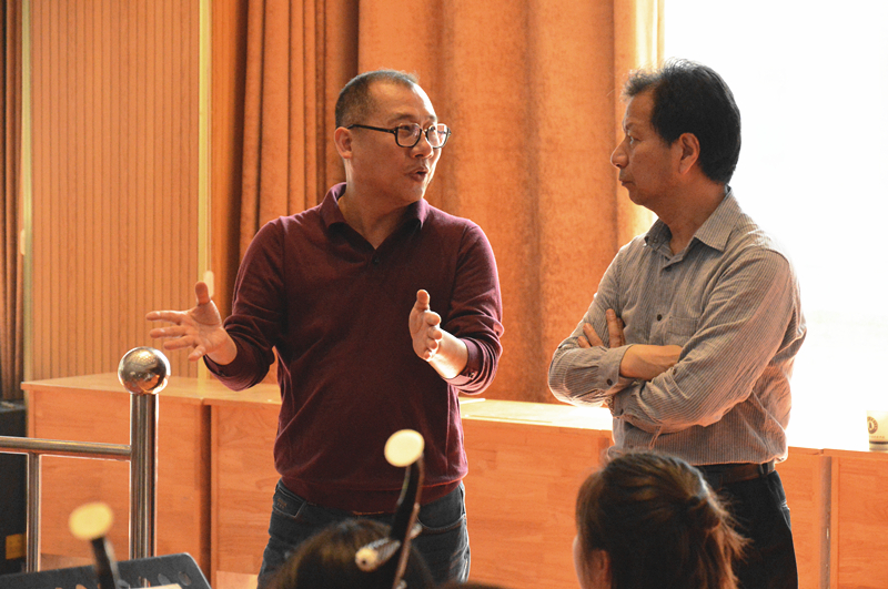 王爱康老师对民族乐团的建设具有相当丰富的经验,他对我们的民族乐团的配置与建设思路表示非常赞赏,并针对我校学生的特点进行现场切实有效的指导,他亲自执棒指挥,仔细对声部的平衡、音准、节奏等问题进行纠正,最后指出下阶段的训练目标,乐团的整体感有了明显提升。
