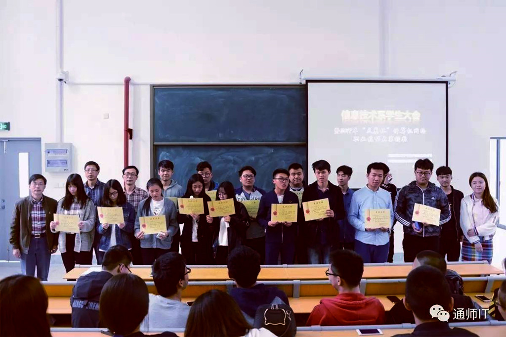 5月9日中午,信息技术系在骛新楼一楼阶梯教室举行了2017年“天翼杯”计算机网络职业技能大赛颁奖仪式。系主任张德清、副主任贺斌、党支部副书记曹斌、系办主任朱晓军和团总支书记嵇棂以及各班班主任参加了本次大会。另,我系还特邀中国电信南通分公司江经理莅临本次会议。