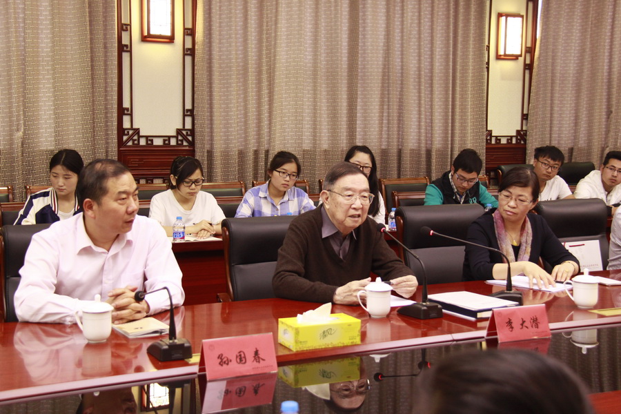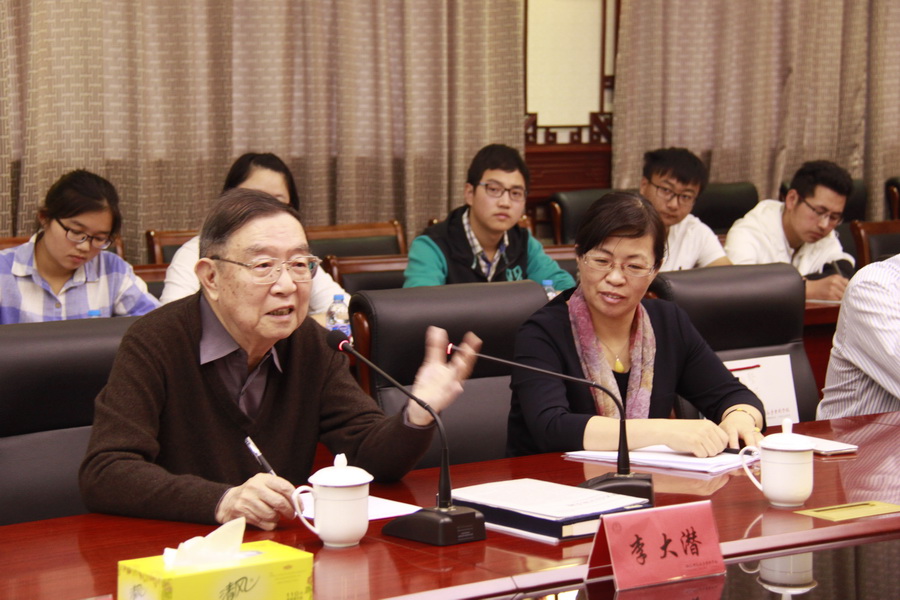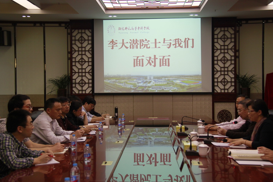 5月25日上午,中国科学院院士、复旦大学教授李大潜应邀来我校座谈指导。李院士出生于南通,1995年当选为中国科学院院士,1997年当选为第三世界科学院院士,2005年当选为法国科学院外籍院士。对一般形式的二自变数拟线性双曲型方程组的自由边界问题和间断解的系统研究,以及对非线性波动方程经典解的整体存在性及生命跨度的完整结果研究,均处于国际领先地位,得到国际上的高度评价。此次回家乡,专程来到师范教育源地,为莘莘学子带来了一场兼具专业与学养、科学与人文、传承与提升的教育教学盛宴。校长朱月萍、副校长孙国春、科协主席缪建红,以及数理系部分领导和师生参加座谈。