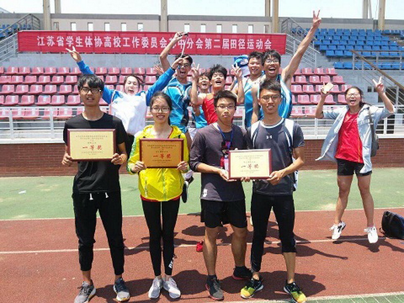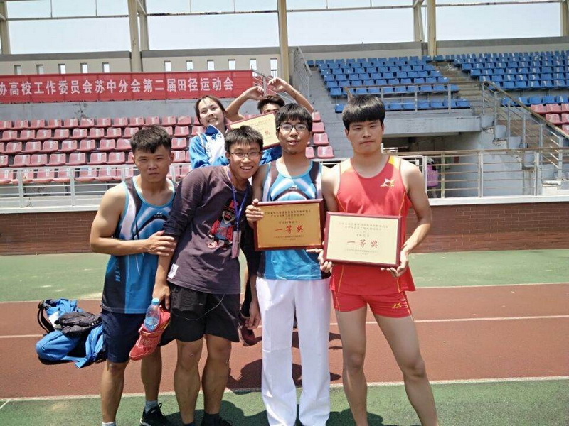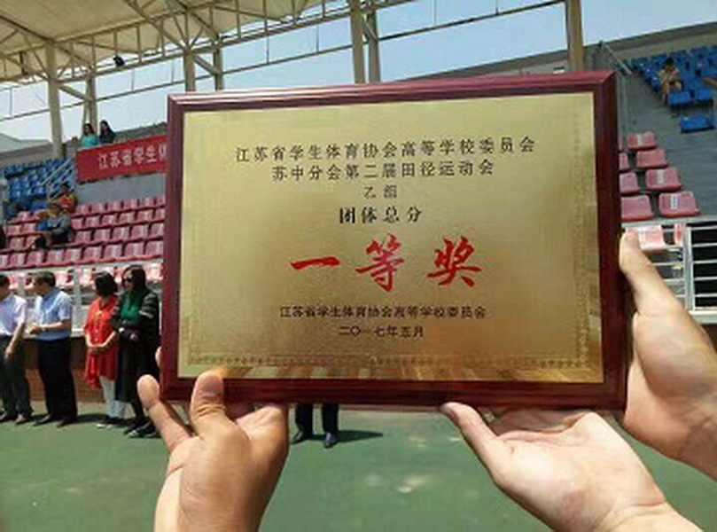 江苏省学生体协高校工作委员会苏中分会田径比赛于5月27、28日在盐城举办,我校田径队队员团结拼搏,勇于争先,一举获得(乙组)团体总分一等奖第一名,男子团体总分一等奖第一名,女子团体总分一等奖第一名和精神文明代表队四项桂冠。