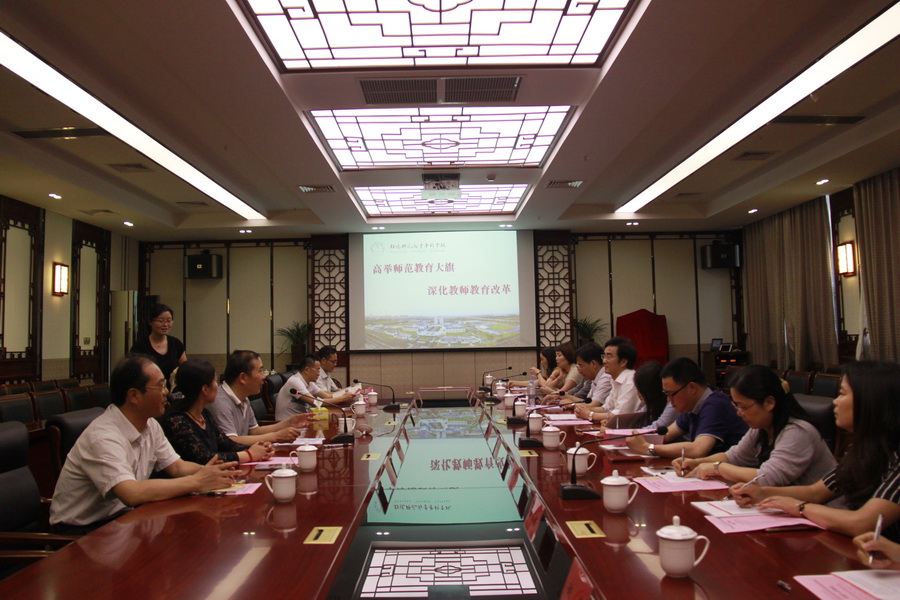 下午5时,来宾们汇集图书馆12楼会议室,展开座谈。首先观赏了学校宣传片《与师范教育同行》,接着孙校长分别从学校发展变迁、人格化教育理念、教育教学管理、人才培养模式等方面作了具体介绍,并且着重提炼了我校在师范生教学基本功大赛,定向师范生培养、国家精品课程、教师培训等方面取得的成绩和经验分享。张局长代表考察团谈了两点感触,一是表达了对师范文化和教师培养理念的由衷崇敬和赞叹,二是希望能借鉴、学习到南通师范作为行业标杆的教育初心和情怀,在武进区教育系统进行改革,着眼顶层设计,抓课程和教师管理,保苗育苗,做强教育。