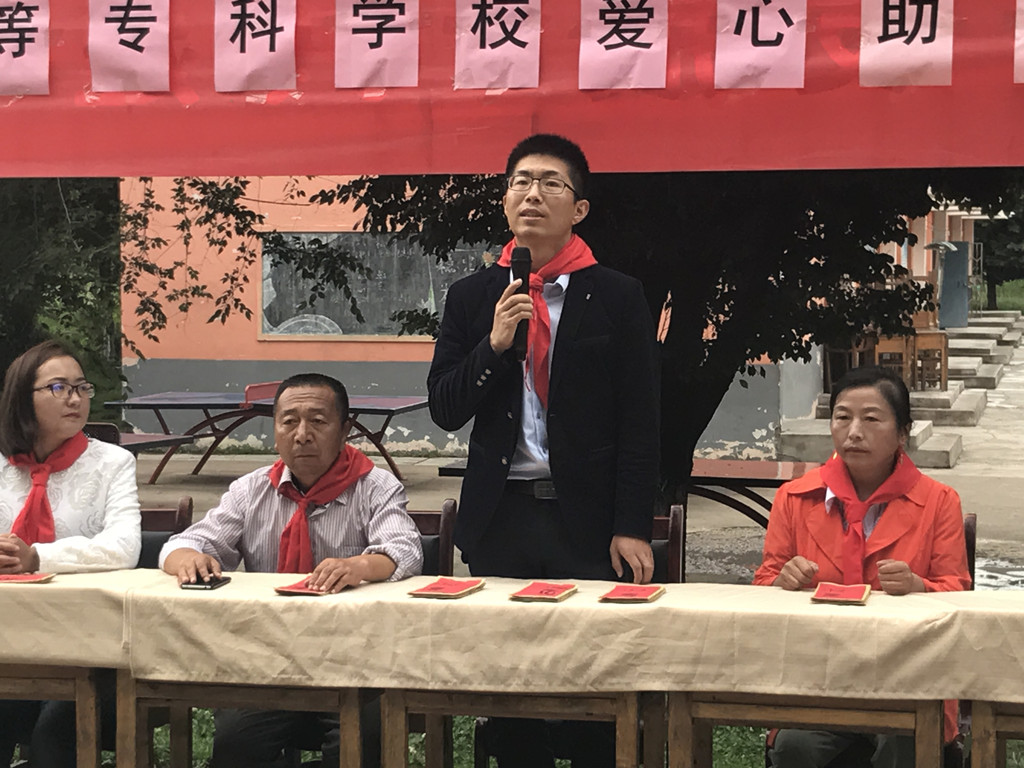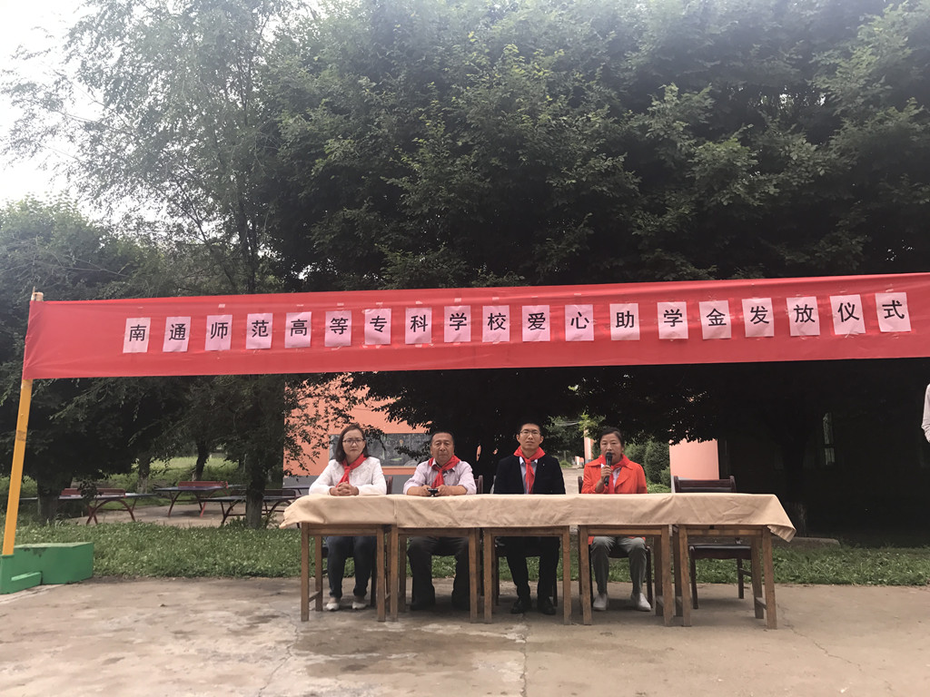 县团委副书记田永春受我校委托,代表我校师生发表了讲话。他简要介绍了此次爱心助学金的来历,以及我校与阿勒玛勒小学结对共建的相关情况。同时也对受助学生们提出了几点希望,一是希望大家懂得感恩,喝水不忘挖井人,要牢记来自南通师范高等专科学校师生们的这份温暖;二是希望大家树立远大的理想,通过不断努力学习科学文化知识,将来更好地报效祖国;三是希望大家培养优良的品德,做一名合格的社会主义公民。他勉励大家要克服眼前困难,要有上进心和求知的欲望,努力成为一名对社会有贡献的人才。