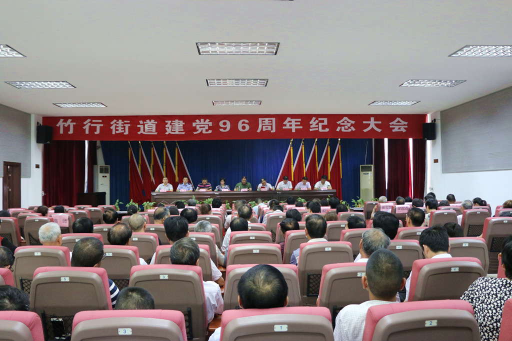 6 月28日上午,开发区竹行街道党工委召开建党96周年庆祝大会,为了加强支部间的交流合作,教学部支部副书记李国忠带领教学部支部党员也参加了这次大会。