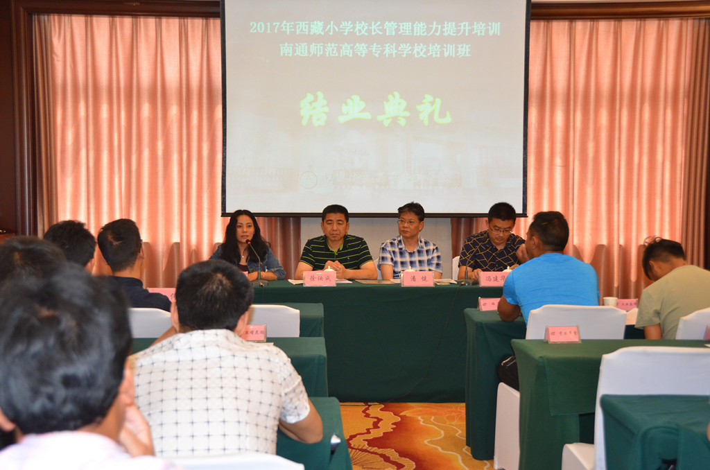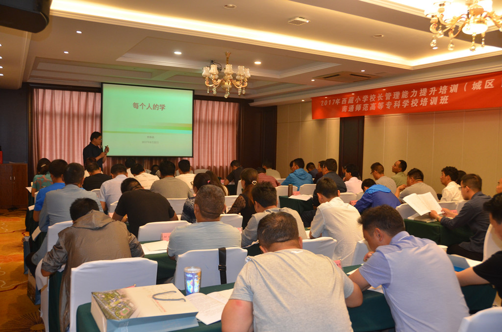 6月30日,来自西藏自治区的50位小学校长在我校经过10天的管理能力提升培训后顺利结业,这是我校继2016年举办西藏自治区幼儿园新入职非学前教育专业教师岗前培训后再一次与西藏自治区教育厅合作。考虑到地域差异、气候差异、民族习惯等因素,学校从学员的往返交通、接机送机、食宿安排、上课时间、上课内容和形式等方面均做了细致而有针对性的安排。培训采取专家报告、参观考察、研讨交流、总结反思等方式,力求增强校长们专业发展的动力和能力;拓展教育视野、更新教育观念,了解学科教学改革的方向、方法和路径;提升学校管理理念、增强学校管理能力。学员们表示,来内地南通学习虽然有点不适应,但能感受到学校为他们做了精心的准备和安排,能够感受到亲人朋友般的关怀和温暖,而且从培训中学到很多新的理念和方法,很有所获,更有学员参观我校校园后赋诗一首: