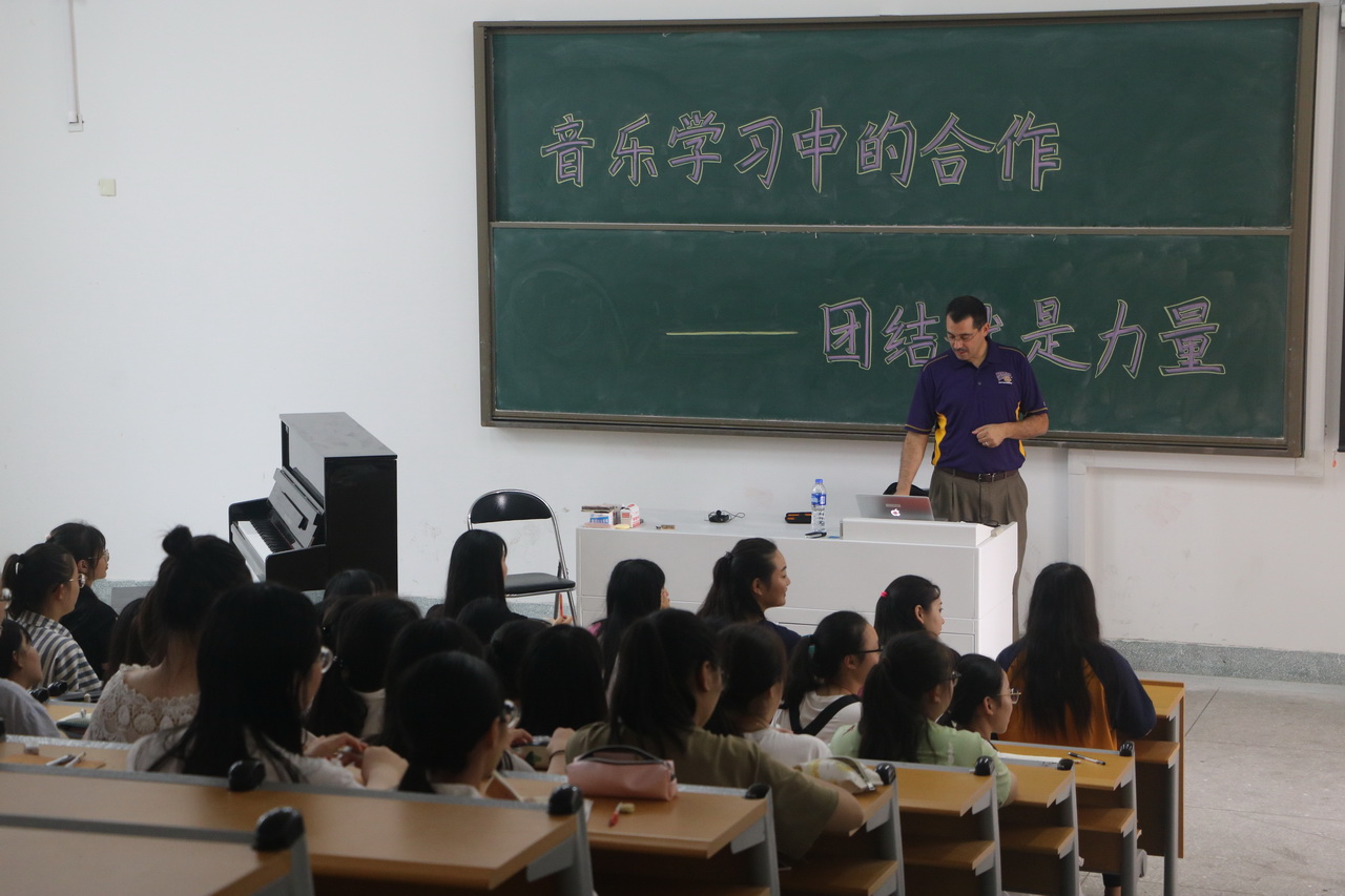 9 月14日至26日,美国西伊利诺伊大学Richard Cangro西洋乐博士、教授(主项吹小号,指挥)受富布莱特项目委派,在我校音乐系进行为期13天的考察交流。