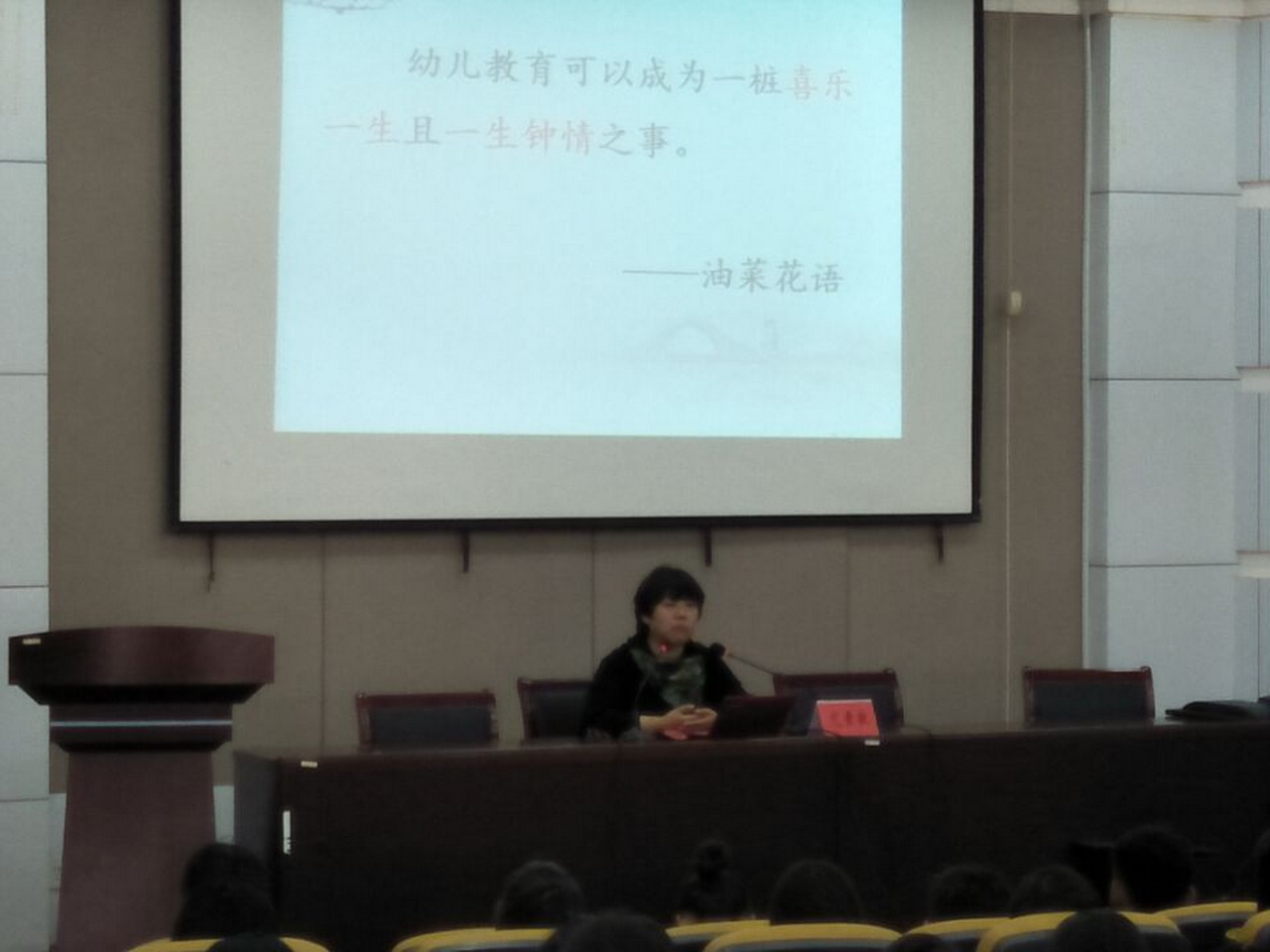 为了帮助2017级学前教育专业新生坚定专业方向,了解专业学习要求,如皋校区学前教育系邀请江苏省幼儿园特级教师、正高级教师尤素敏于10月21日和28日上午,分两场为560多名新生开设了“终生与儿童为友,我快乐”的专题讲座。