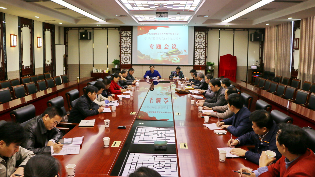 10月30日下午,我校召开党委扩大会议,传达学习党的十九大精神。党委书记刘锋传达了党的十九大精神、10月26日召开的南通市学习党的十九大精神专题报告会的有关精神。全体校领导,支部书记,党办、校办、纪审、组宣等部门负责人参加专题会议。
