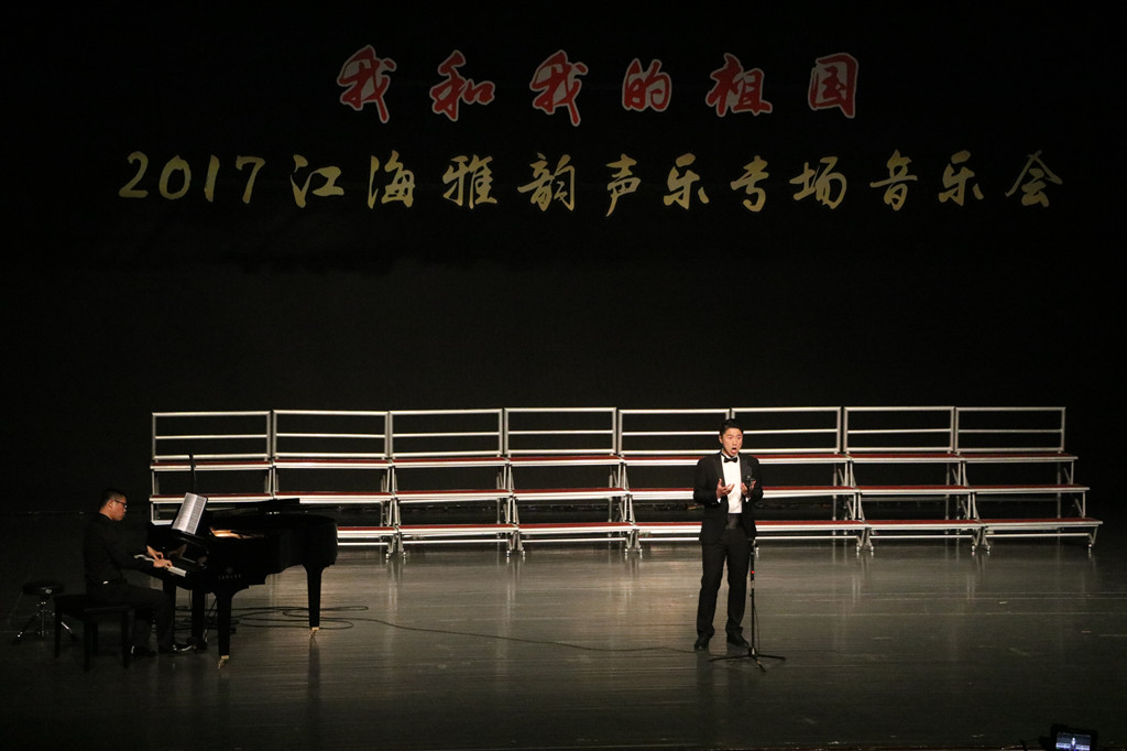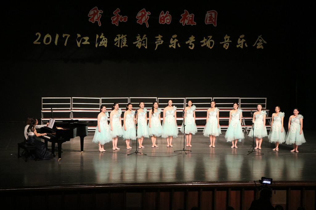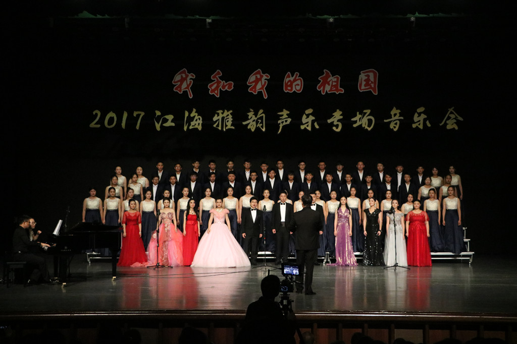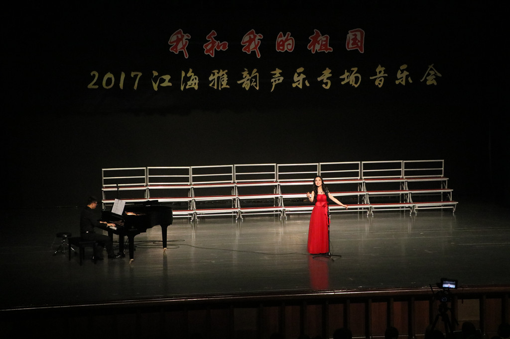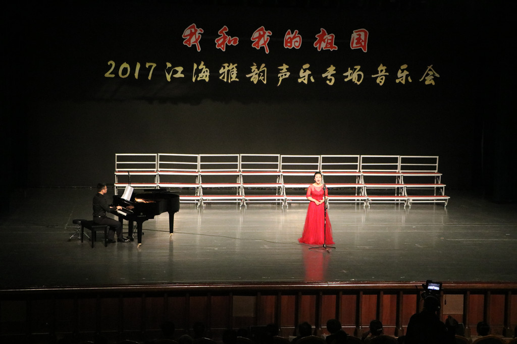 2017 年 10 月 28 日下午,南通壹城剧场“江海雅韵”迎来了我校第二场——“我和我的祖国”声乐专场音乐会,吸引了众多爱好者和广大师生前来欣赏。音乐系全体声乐教师、部分学生代表以及合唱团演绎了《你是血脉我是血》、《我的深情为你守候》、《山童》、《大江东去》等经典歌曲,为南通市民带来了一场视听上的饕餮盛宴。
