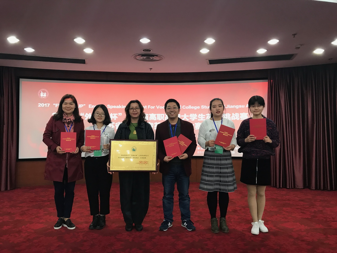 近期,“外研社杯”江苏省高职高专英语演讲大赛在江苏城市职业学院圆满结束。经过即兴演讲、口语表达等环节的比赛,我校外语系选手表现突出,取得优异成绩。张致君、张云岫二位同学荣获一等奖一、二名;汤文欣同学荣获二等奖。得益于个人赛的优异表现,我校被大赛组委会授予2017“外研社杯”江苏省高职高专英语演讲大赛团体奖,为此次大赛悉心指导的周尧老师和王燕老师荣获优秀指导教师奖。