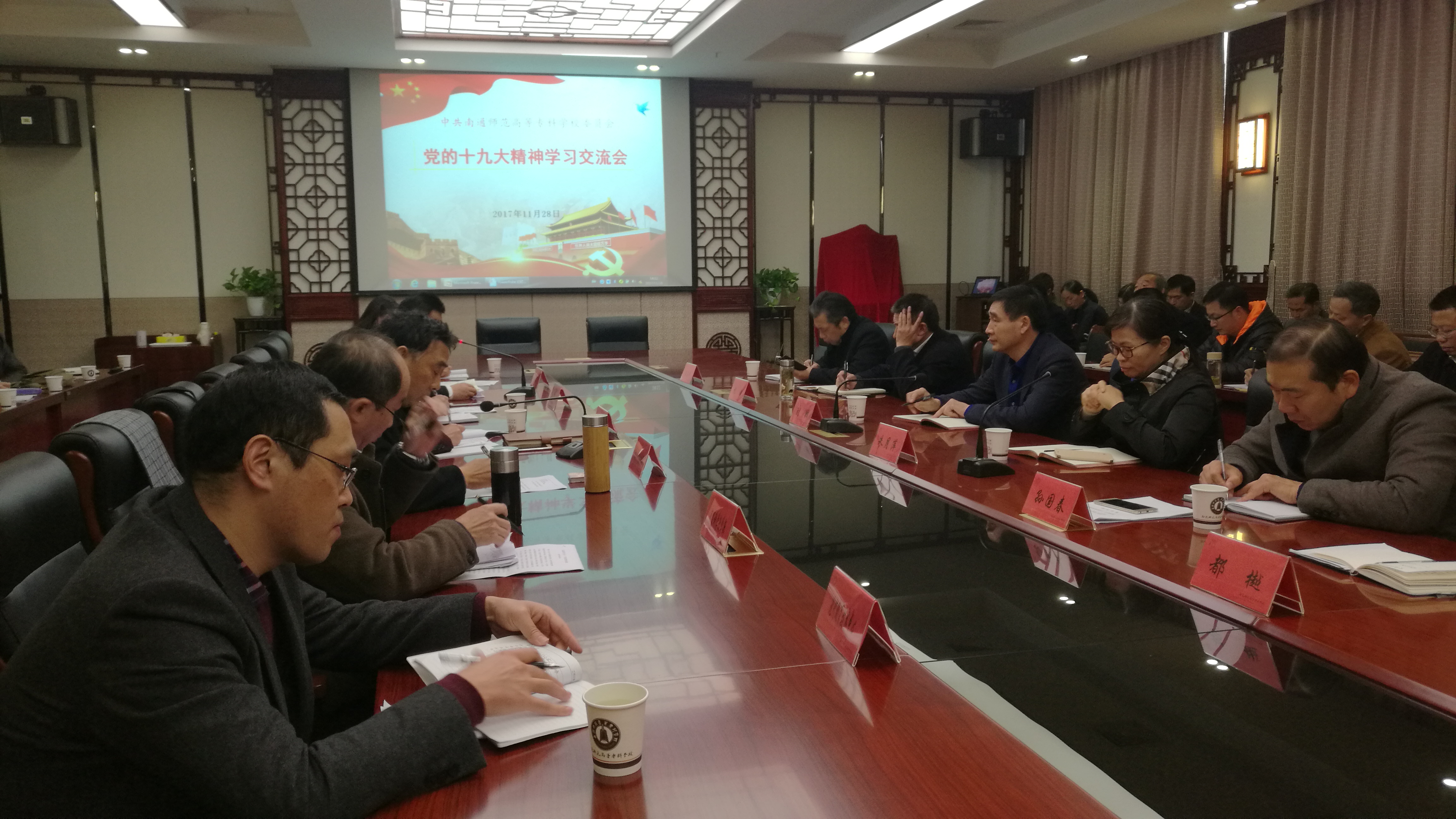 11 月28日下午2点,党委在图文信息中心12楼会议室召开党的十九大精神学习交流会。全体校领导、中层干部参加会议,朱月萍校长主持会议。