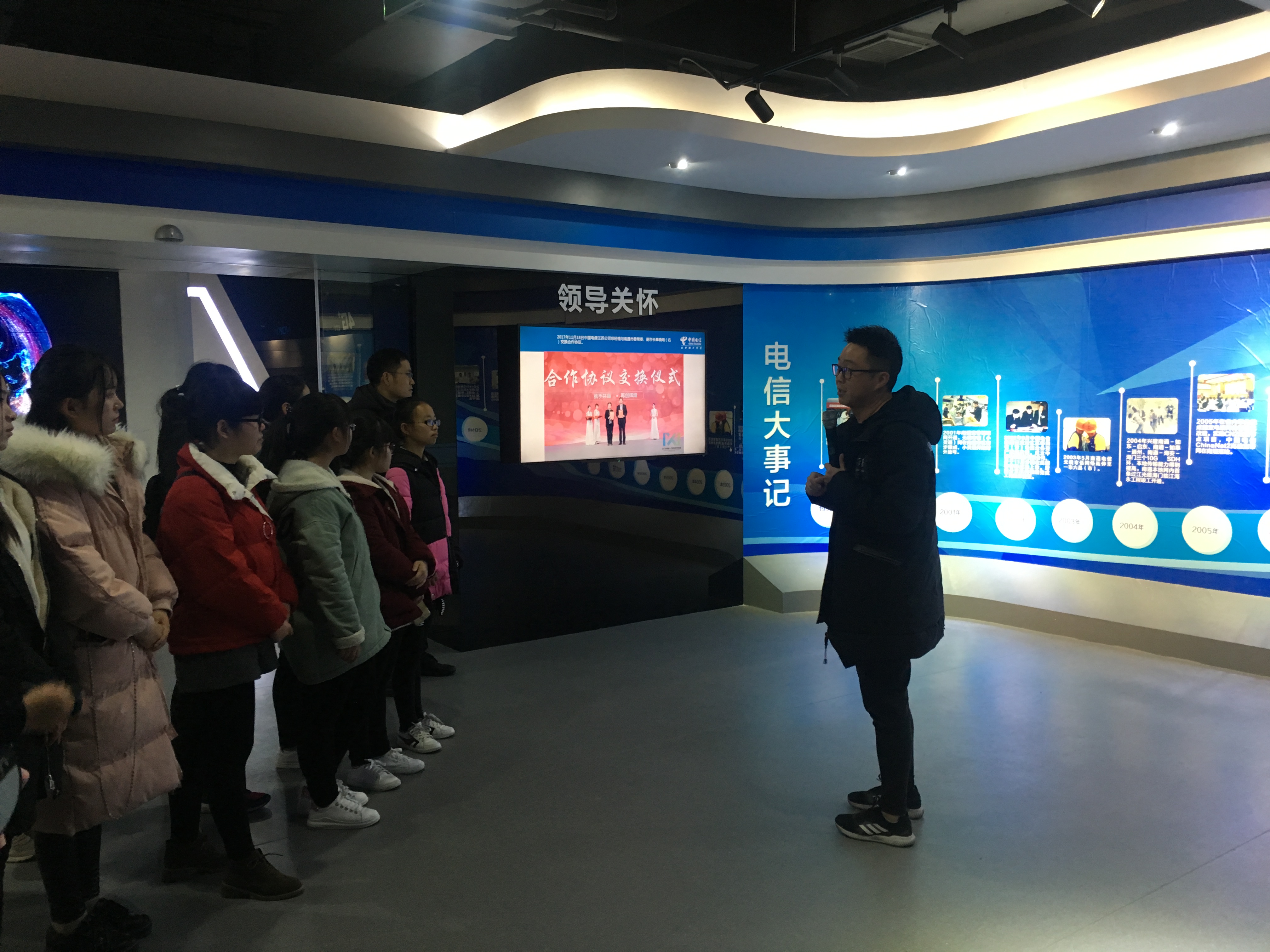 12月24日上午,我校信息技术系与南通电信校企合作办学的第一届基久电信服务与管理专业合作班在南通电信大厦展开了拓展训练营活动。此次活动秉承着“合作互利,共创佳绩”的主旨,以提升同学们对本专业的认知,感受现代科技的飞速发展为目的来开展的。