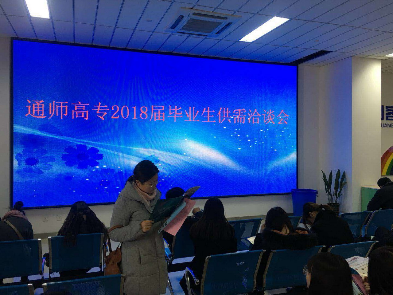 为切实做好我校2018届毕业生就业工作,构建毕业生与用人单位的交流平台,为毕业生提供就业服务,2018年1月5日下午,我校在崇川区人力资源服务中心成功举办了2018届毕业生首场大型供需洽谈会,80多家用人单位和我校2018届的450多位毕业生参加了洽谈会。