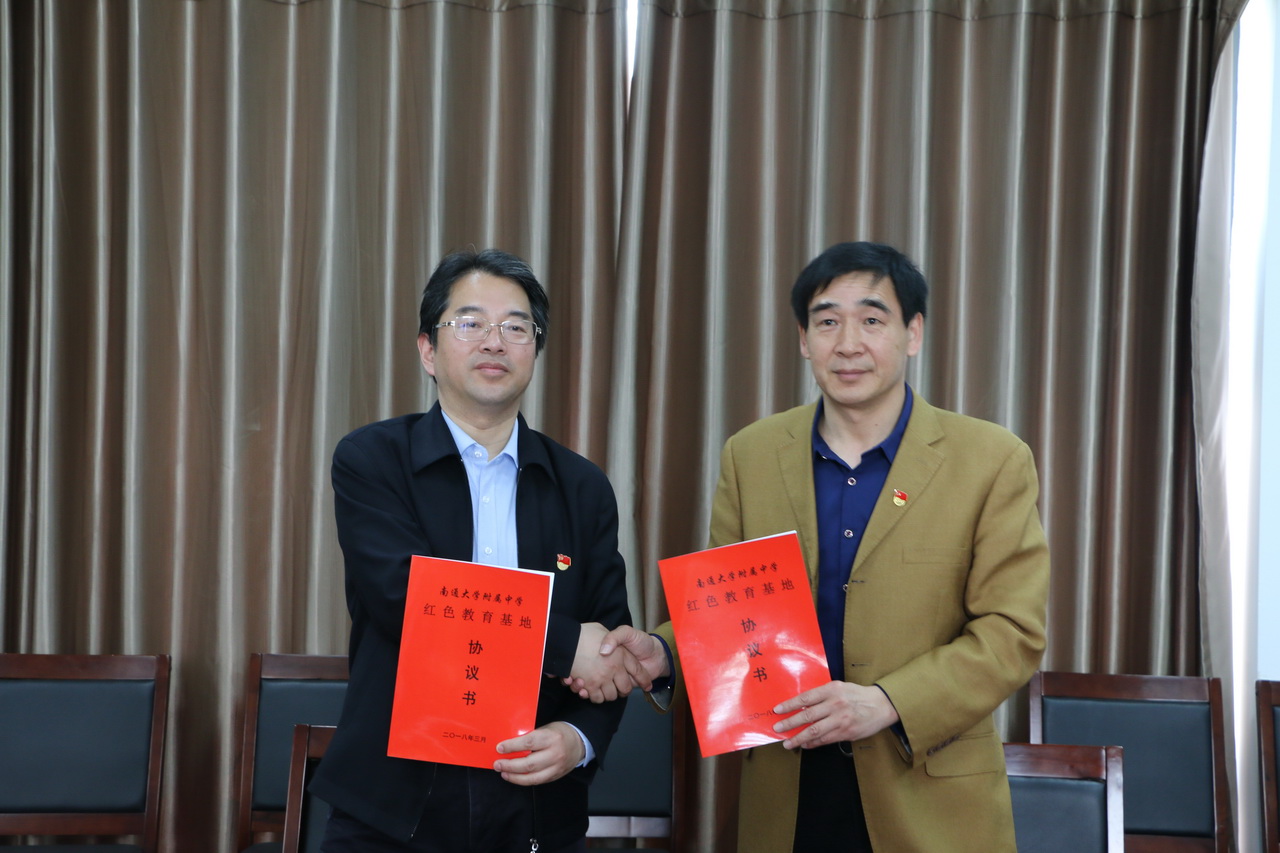 3月31日,我校与南通大学附属中学签订“红色教育基地”合作共建协议。