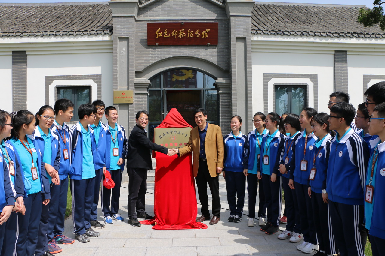 在我校红色师范纪念馆前,两位校领导还共同为“南通大学附属中学红色教育基地”揭牌。