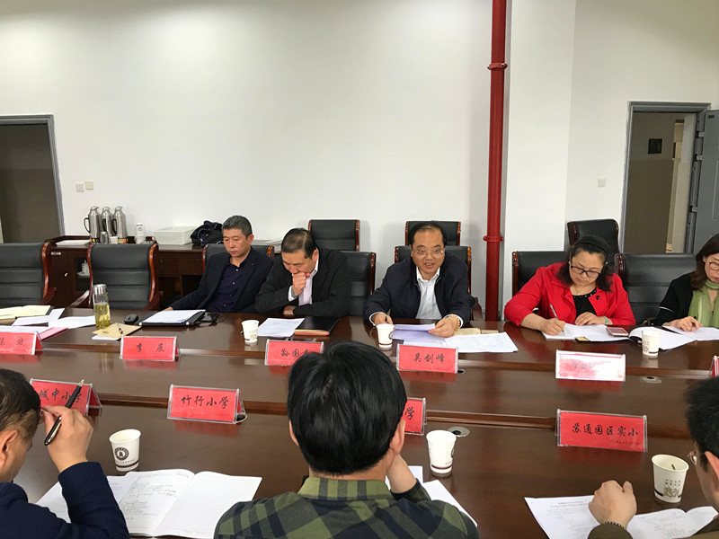11日下午,我校2018 年上半年教育实践工作联席会议 在新校区时孙楼 306 会议室召开 ,来自南通市崇川区和经济技术开发区十余家小学和幼儿园的校长、副校长、园长、副园长参加了会议,我校孙国春副校长、教务处吴剑峰处长、李展副处长、实践科陈斌科长出席了本次会议。