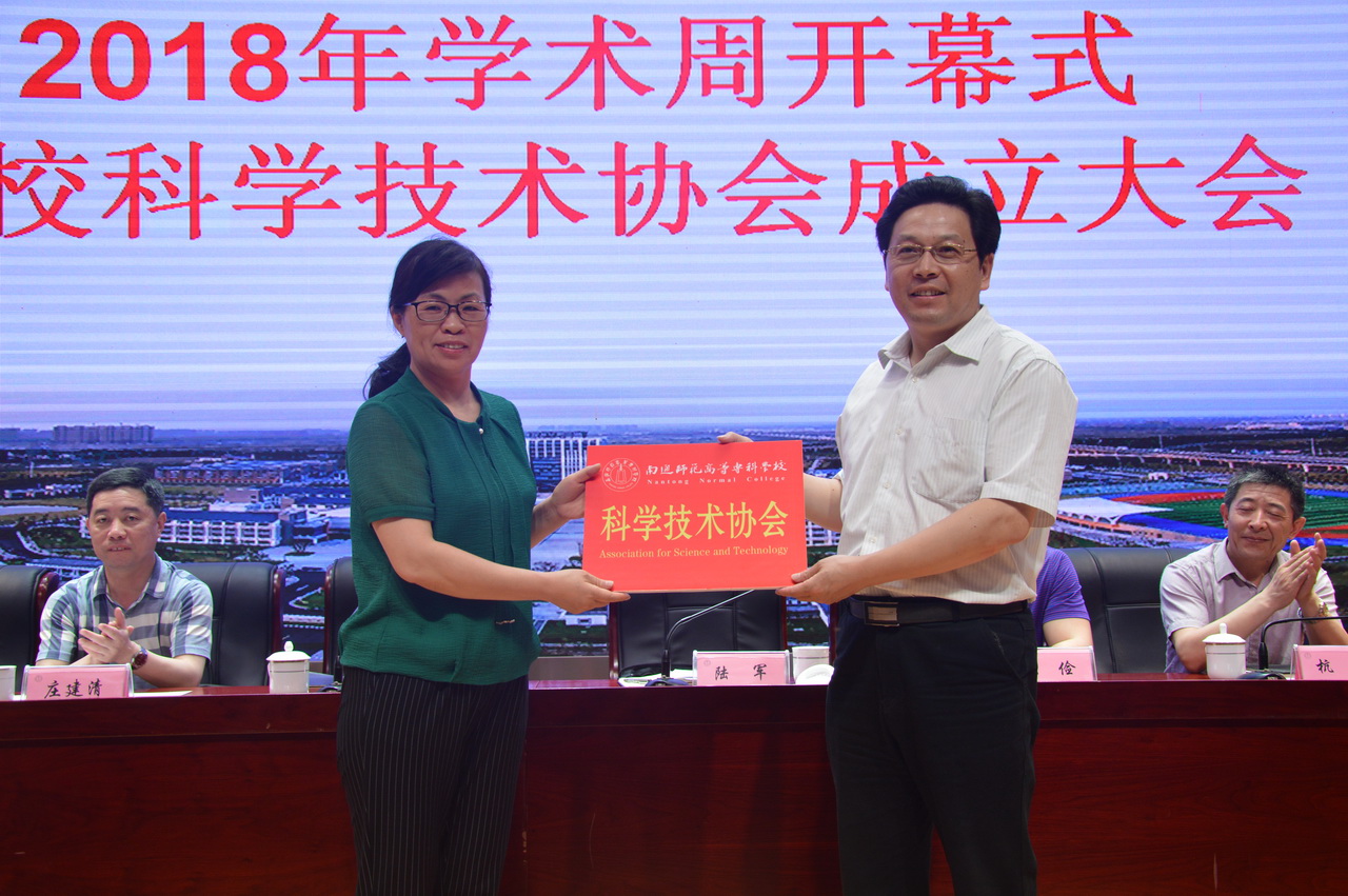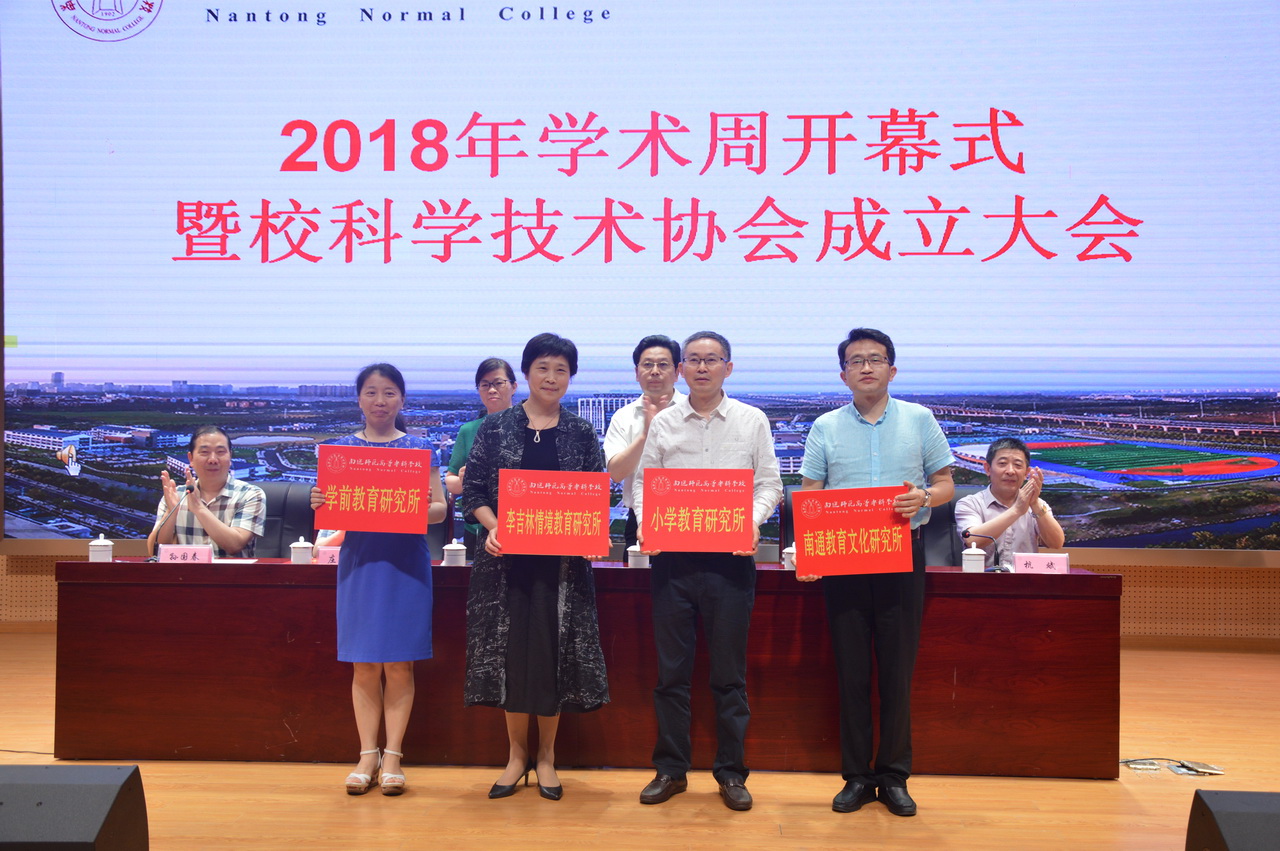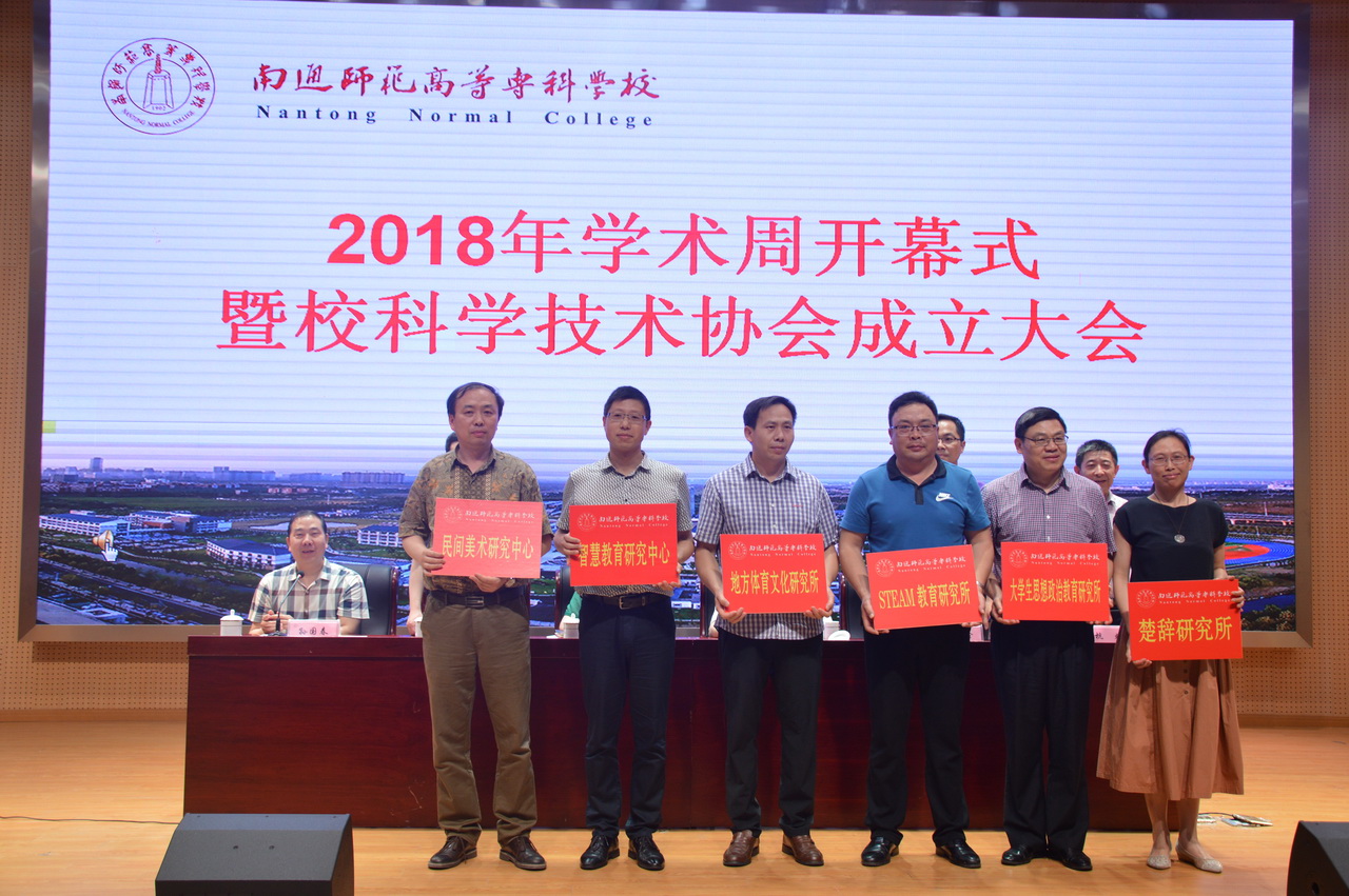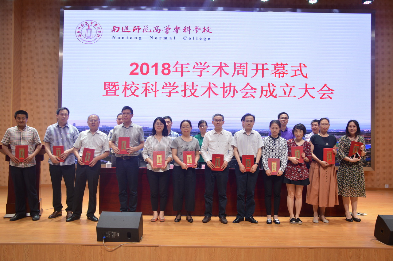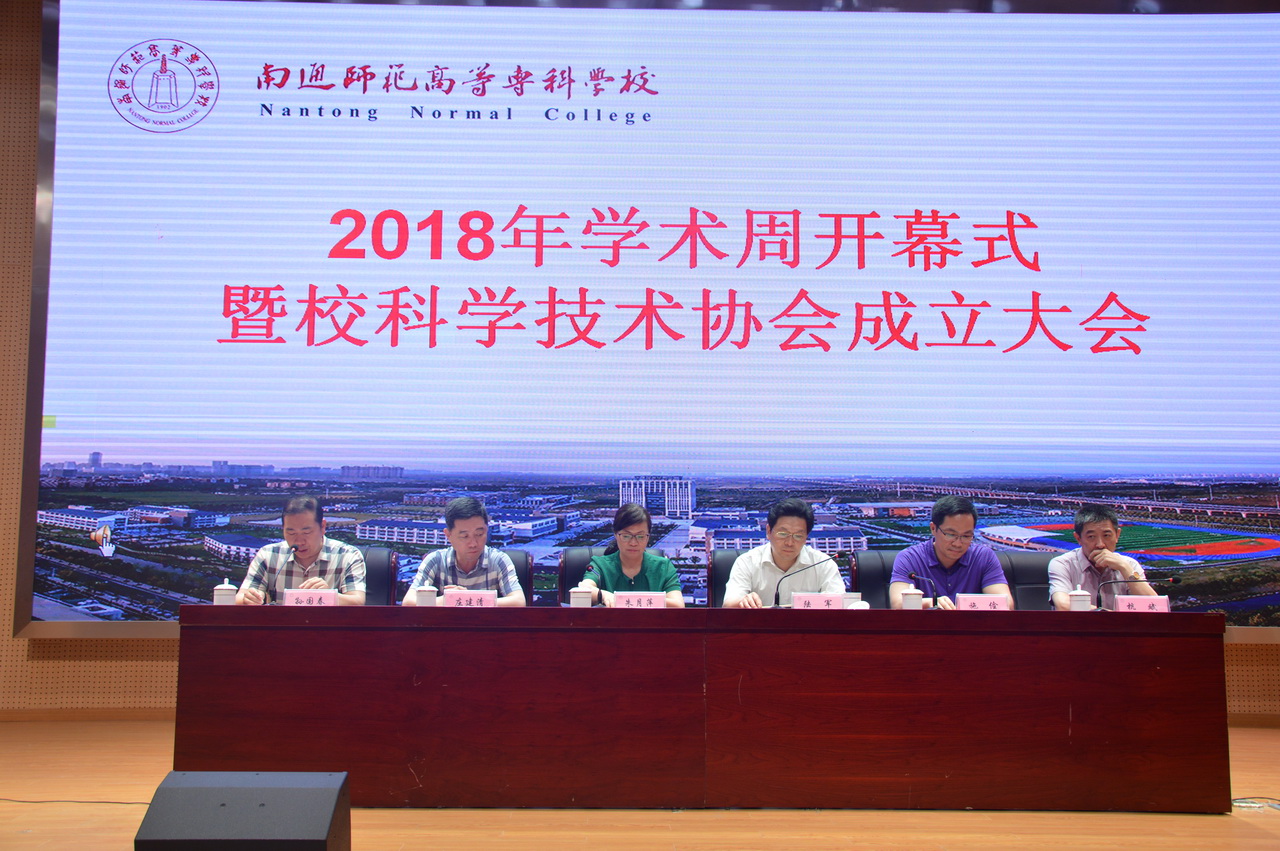 5月18日下午,我校隆重召开南通师范高等专科学校2018学术周开幕式暨校科学技术协会成立大会。南通市科协党组书记、主席陆军,南通市科协党组成员、主席助理庄建清,南通市科协学会部部长施俭到会祝贺,我校党委副书记、校长朱月萍,党委副书记杭斌以及各系部主任和教职工代表、校科协会员代表参加了本次大会。会议由孙国春副校长主持。