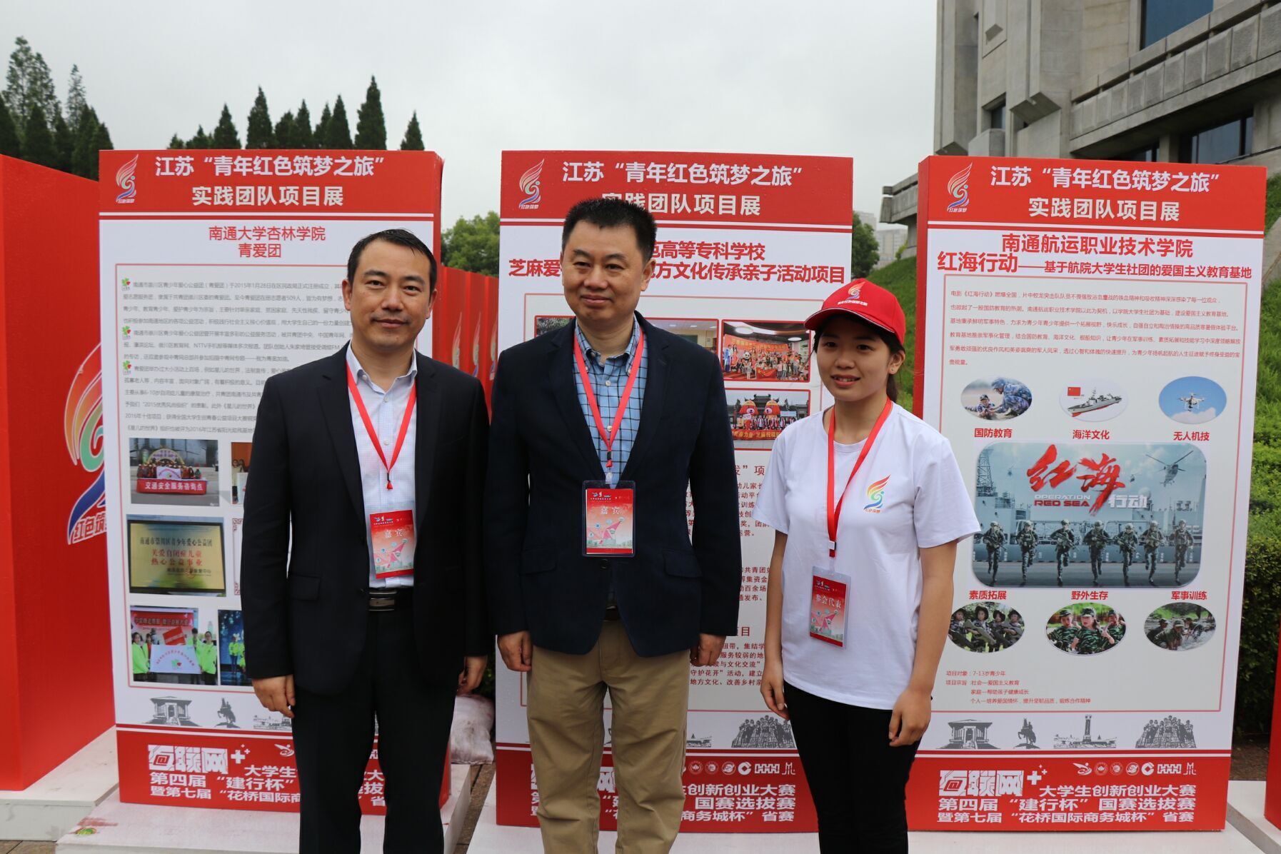 为学习贯彻习近平新时代中国特色社会主义思想和党的十九大精神,深入落实习近平总书记给第三届大赛“青年红色筑梦之旅”大学生重要回信精神,鼓励大学生用创新创业成果服务乡村振兴战略、助力精准扶贫、扎根中国大地书写人生华章, 5 月 20 日,我校江苏省优秀大学生创新创业项目“芝麻屋亲子教育网络平台开发”项目团队代表张琳婕、万鸿伟,项目指导老师刘永华,校教务处倪明明老师四人一道亮相于在淮安周恩来纪念馆举行的以“红色筑梦点亮人生,青春领航振兴中华”为主题的 2018 年第四届江苏“互联网+”大学生创新创业大赛“青年红色筑梦之旅”活动启动仪式。