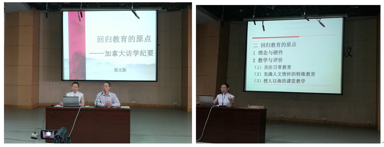 梁文勤副教授的讲座《回归教育的原点》从理念与硬件,教学与评价两个方面为我们分享了她前不久加拿大访学的几点感受。从教室的活动课桌到课程的自主规划,从教学场所的人性化设计到老师充满人文情怀的特殊教育,在座的老师和同学跟随着梁老师的介绍,从若干图片和视频中,既领略了加拿大国树枫树的似火风姿,又看到了加拿大注重培养学生自主思考和学习能力的课堂。此次讲座不仅仅是一次加拿大访学汇报,更是一次对教育深层本质的探讨:为人师者,便是要关注日常教育,深谙授人以渔的教育理念,回归教育的原点。