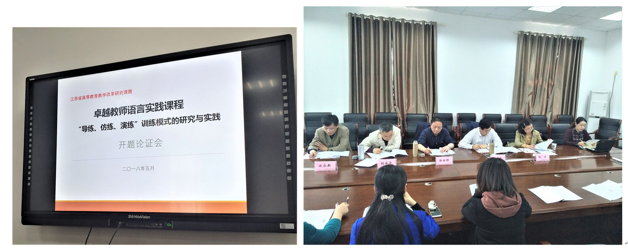 人文系许迅老师主持的江苏省高等教育教学改革立项课题《卓越教师语言实践课程“导练、仿练、演练”训练模式的研究与实践》也在学术周期间举行了开题论证会。