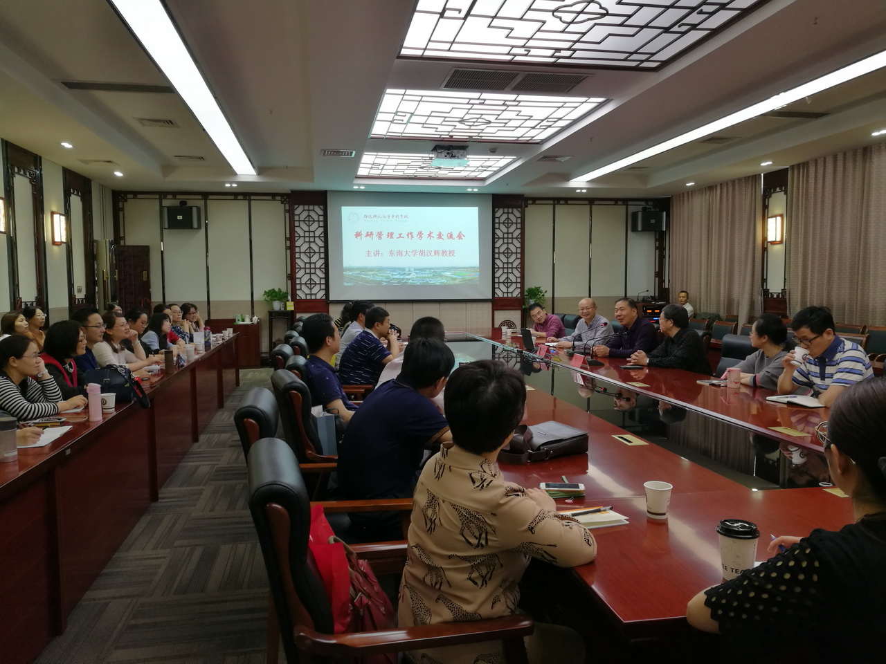 捐赠仪式前,胡汉辉教授结合其长期担任东南大学科研处副处长、东南大学集团经济与产业组织研究中心主任、国家科学技术奖会审专家等经历,与我校各系部分管科研工作的主任、科研骨干等围绕科研管理、课题申报等开展了学术交流。胡教授认为科研工作在学校内涵发展中尤为重要,能为升本提供强大动力,从事科研工作要有责任和坚持,要有长期和近期规划,要凝炼优势并提供必要的条件保障。