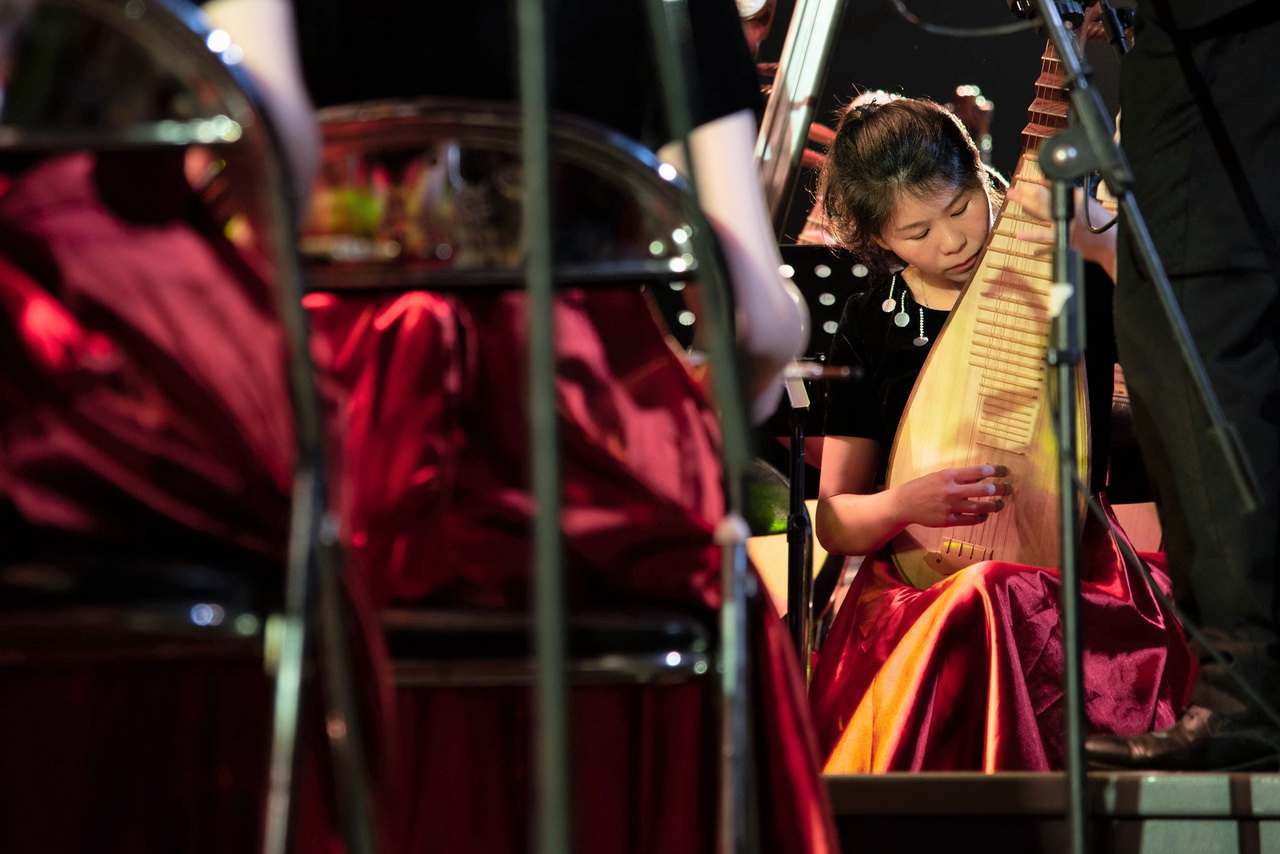 由我校音乐系黄忠主任担任指挥的大学生民族乐团用民族器乐诠释民族经典,《我的祖国》是电影《上甘岭》的主题歌,描写的是在抗美援朝战争中最为激烈的一次战役,中国人民志愿军在极其艰苦的条件下奋勇杀敌的英雄事迹,跌宕起伏的旋律,壮丽恢弘的乐章生动形象地表现了志愿军战士对祖国、对家乡的无限热爱之情和英雄主义的气概。《瑶族舞曲》的演绎丰富、生动的展现了瑶族民众欢歌热舞的喜庆场面,用其优美的旋律,表现了能歌善舞的瑶族人民的生活情貌,场下观众听得如痴如醉,纷纷拍手叫好。