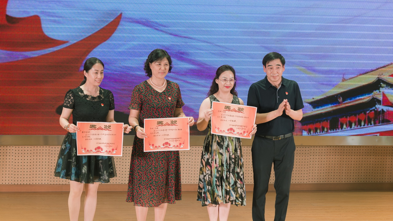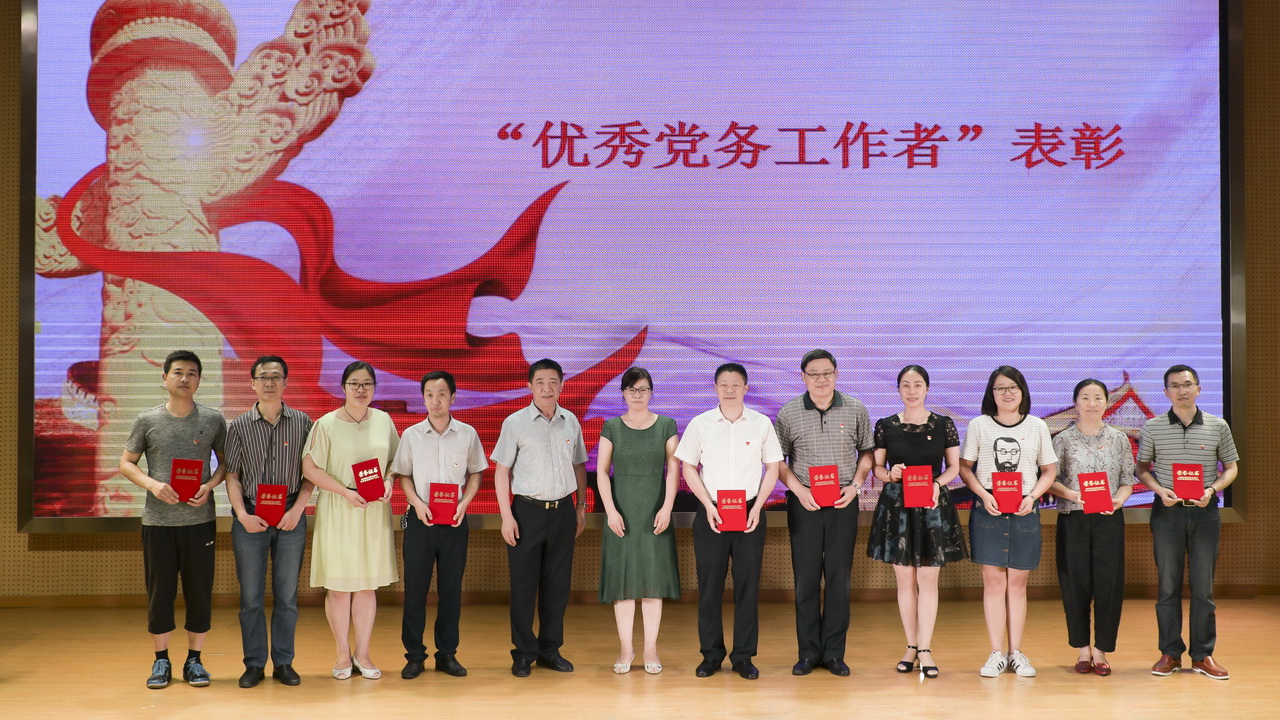 学校党委副书记、校长朱月萍同志宣读党委表彰决定,学校党委领导班子成员为受表彰的集体和个人颁奖。教学部支部、行政二支部、行政一支部等三个支部获得“先进党支部”称号,杜飞飞等46位同志获得“优秀共产党员”称号,魏荣华等10位同志获得“优秀党务工作者”称号。