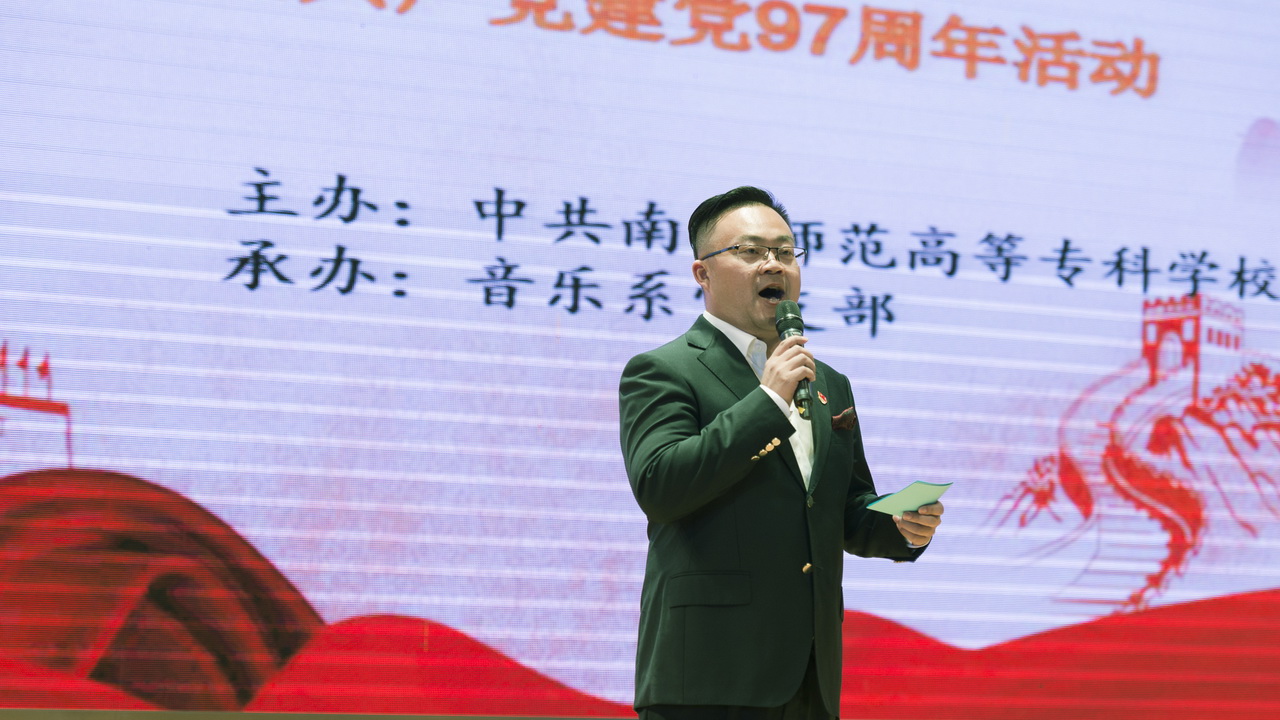 6月29日下午,由学校党委主办、音乐系党支部承办的庆祝中国共产党成立97周年活动“唱支山歌给党听” 在图文信息中心小报告厅举行。