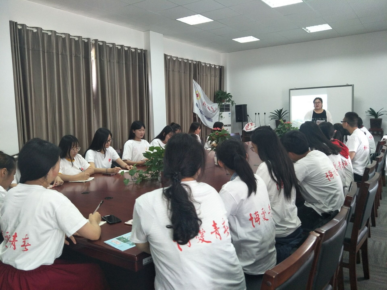 7月5日, 南通师范高等专科学校2018年“博爱青春”工作部署会召开, 团委书记马文娟、博爱青春活动负责人徐雅婷主持会议。会上,马文娟老师强调了活动安全、文明、宣传等事宜,学生代表徐雅婷根据各个社区的实际活动开展情况进行了补充,各个社区的负责人也针对本社区活动安排作了汇报。