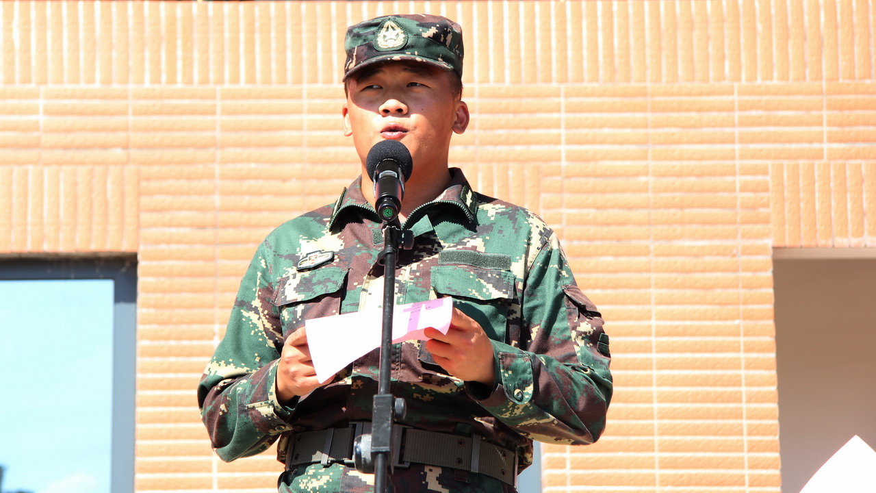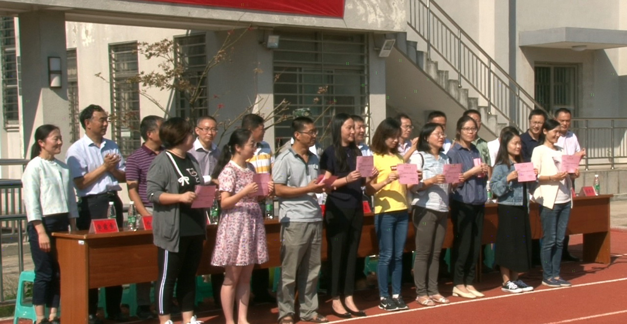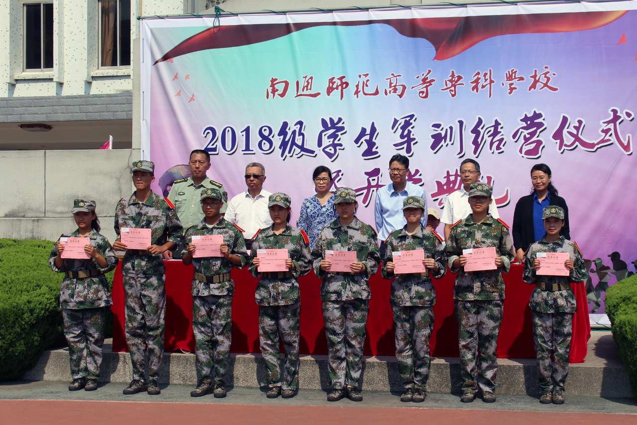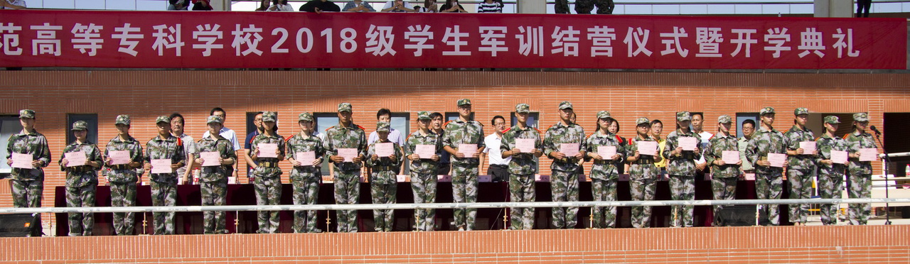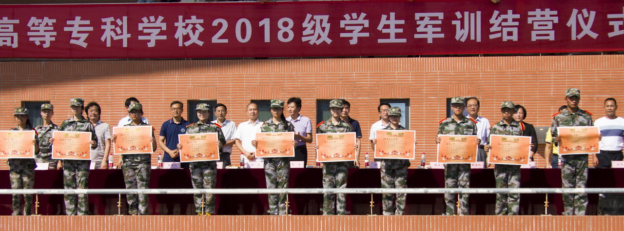 校领导宣读“军训先进集体”、“优秀带训老师”和“军训优秀学员”表彰决定。主席台领导为获奖代表颁奖。