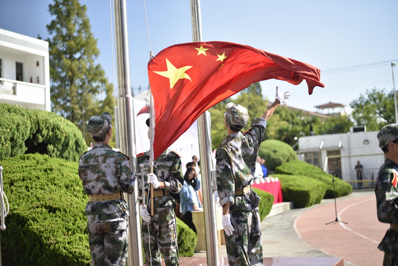 军训汇报结束后进行了2018级新生开学典礼。新生代表发言,感念军训对意志品质的锤炼,表达了对未来学习生涯和人生考验的憧憬与自信;学生会干部与新同学一起分享校园学习、生活感悟;老师代表致辞,鼓励新生们在接下来的学习生活中继续发扬军训期间抗高温战台风的拼搏精神,放眼学界,立足专业,培养开阔的胸襟和健康的心智,提高自我意识、合作意识和处理人际关系的能力。