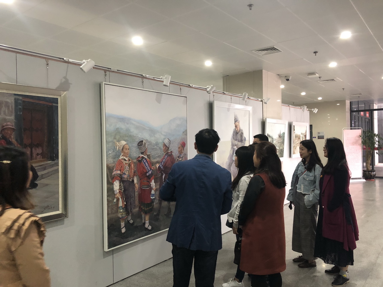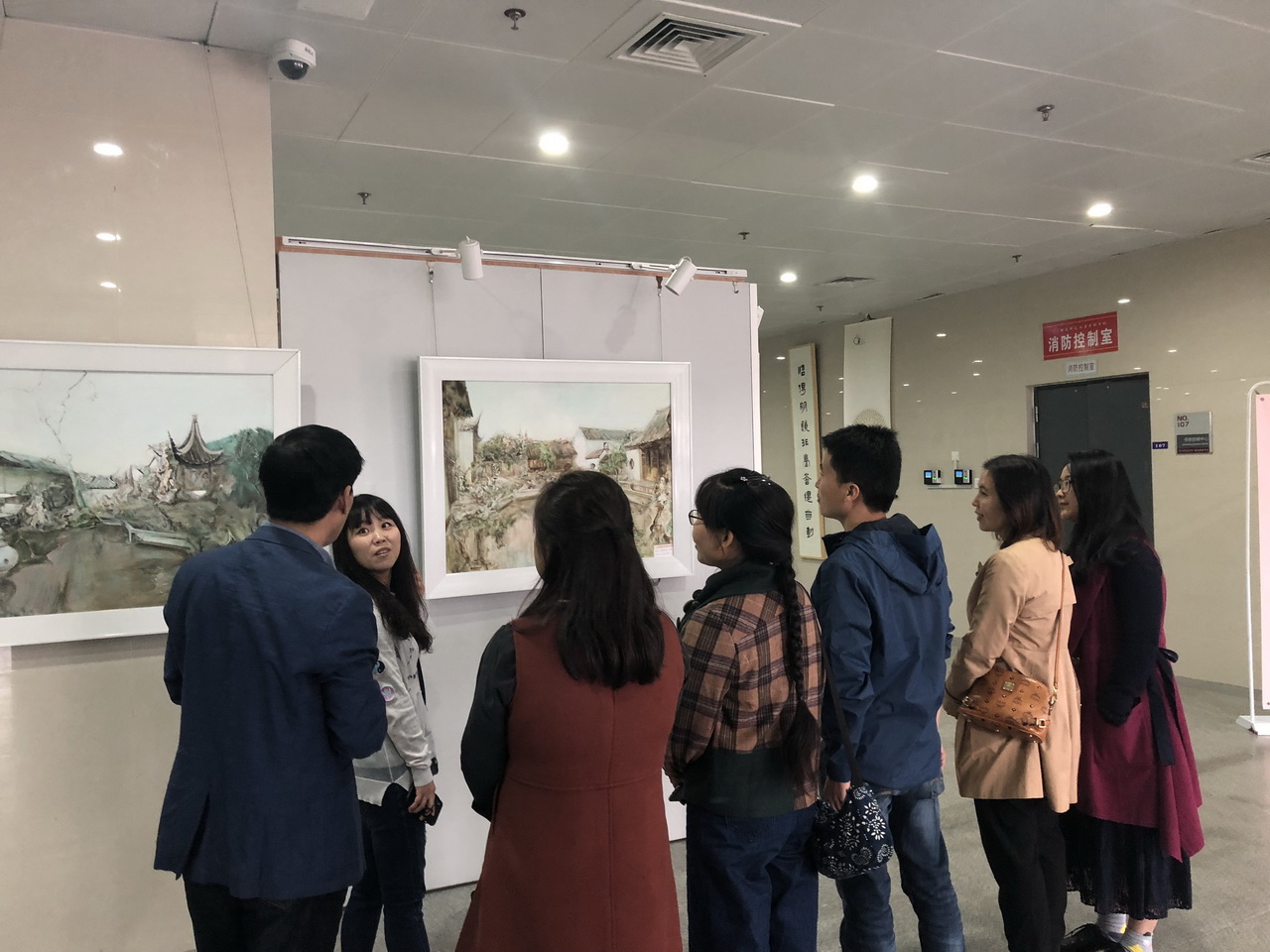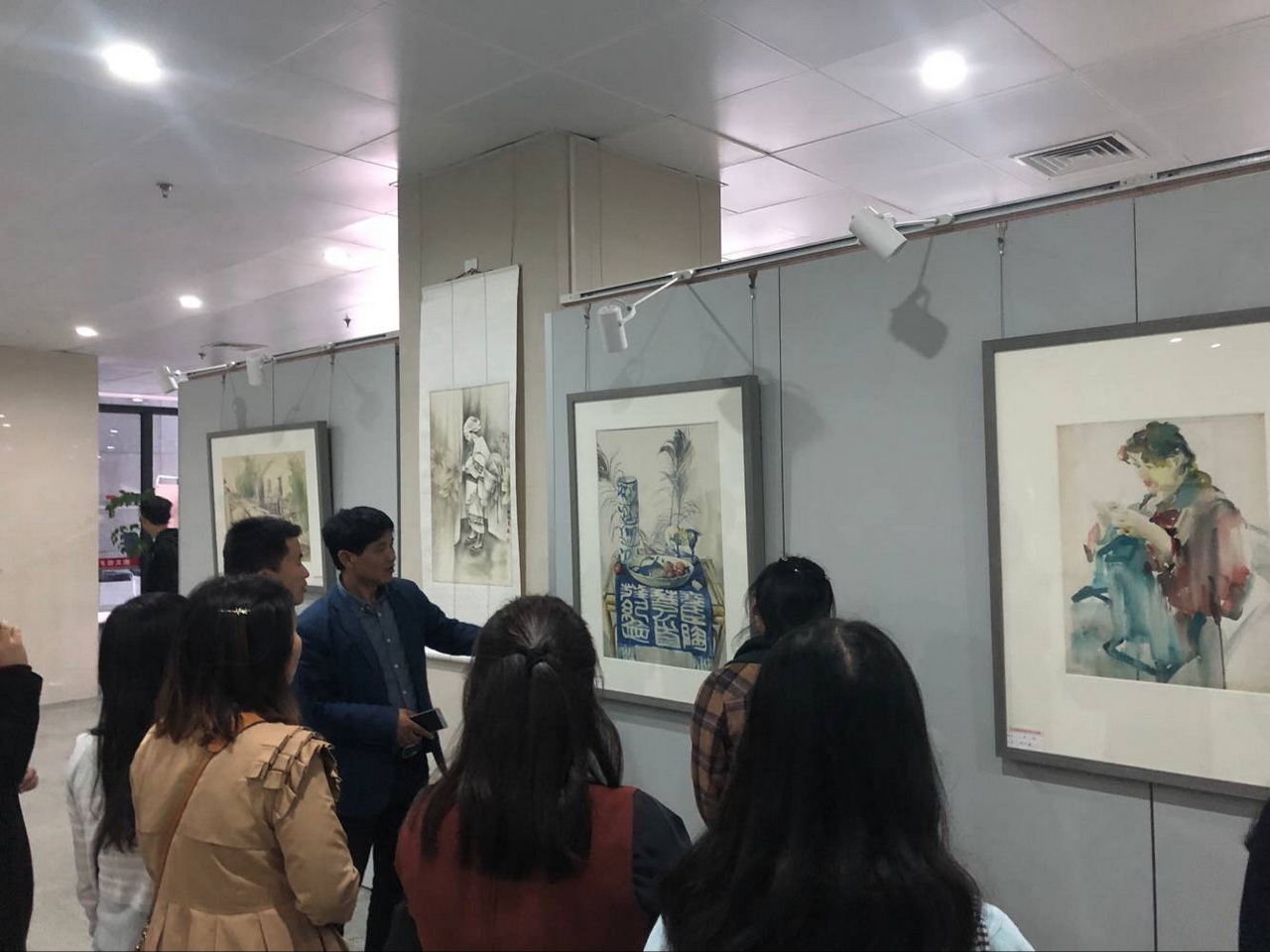 展出的53幅书画设计作品有中国画、书法、油画、水彩、版画、文字设计、室内设计、景观设计、动画形象设计等。作品的主题鲜明,形式新颖,手法熟练,富有浓厚的生活和时代气息,集中体现了我系教师自觉传承和创造优秀美术文化,牢记嘱托,以美育立德树人的责任担当。在作品观摩现场,老师们结合学习习近平总书记给中央美术学院8位老教授的回信精神,交流了学习和创作体会,他们一致认为,总书记的重要回信高屋建瓴,以深邃之见,简练之笔,阐明了新时代美育工作在塑造人的美好心灵中的重要作用,强调了美育工作者“以大爱之心育莘莘学子,以大美之艺绘传世之作”的责任和担当。大家深刻认识以美育立德树人,就是要立足岗位,坚守美育初心,把美育与社会主义核心价值观结合起来,与新时代人民对美好生活的向往结合起来,与现实的社会生活结合起来,与美术教学和创作实践结合起来,这样,才能更好地完成教书育人的使命。
