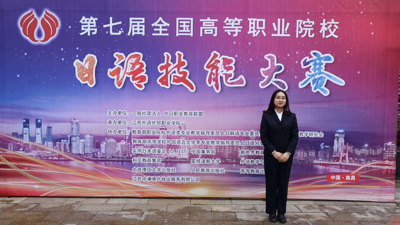 全国高等职业院校日语技能大赛,是由中日职业教育联盟主办,教育部职业院校外语类专业教学指导委员会日韩语委员会、中国日语教学研究会、教育部高等学校外国语言文学类专业教学指导委员会日语分委员会协办,是国内唯一面向高等职业院校学生的全国性专业大赛。此次比赛吸引了来自全国36所高职院校、200余名选手参赛,吴昱同学在比赛过程中仪表大方,语言流畅,即席回答环节沉着冷静,应答如流,受到了评委的一致好评。