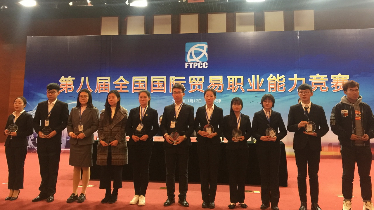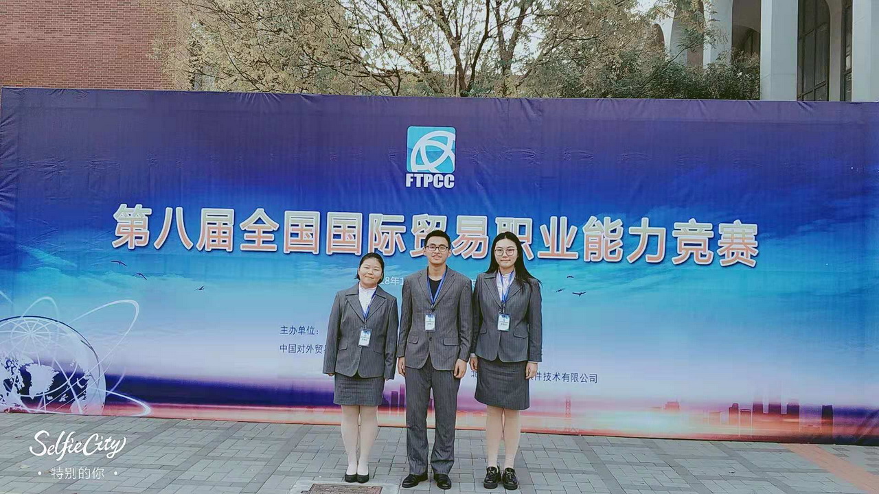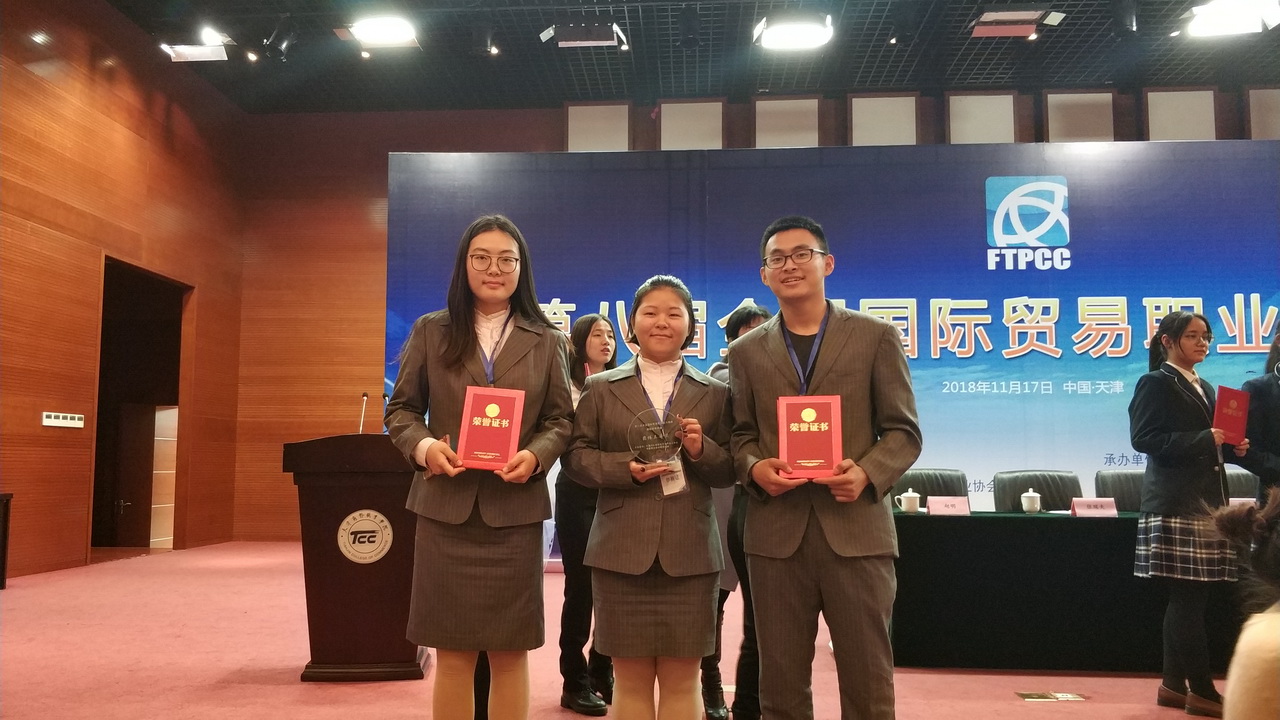 2018年11月15-18日,第八届全国国际贸易职业能力竞赛在天津商务技术学院举行。我校外语系2015级商务英语专业顾雨、朱佳金和丁淑娴三位同学组队参赛,在指导教师张旭、袁明华老师带领下,与来自全国31所本专科院校的38支代表队同台竞技,喜获“国际贸易师组”综合业务技能三等奖。