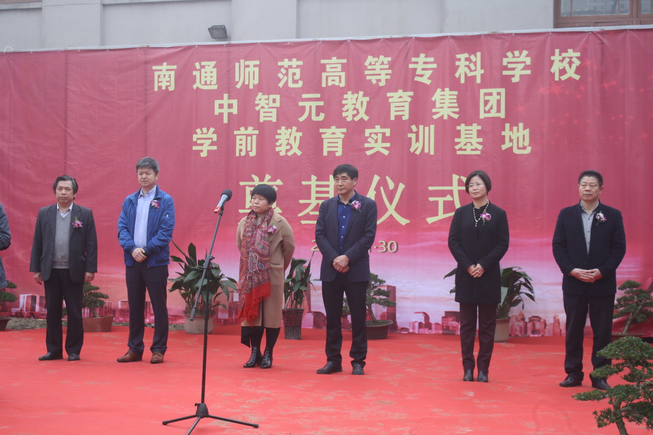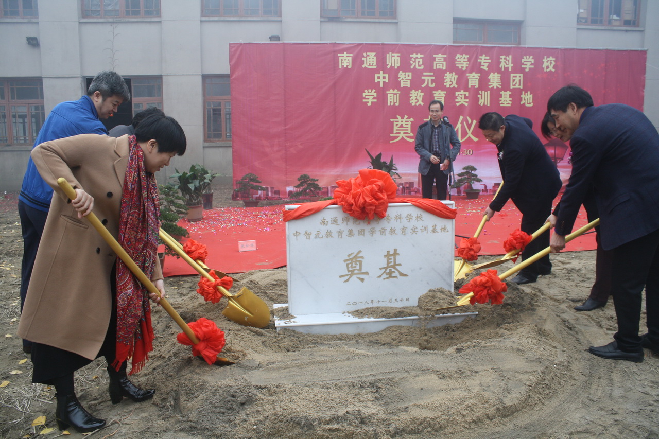 11月30日上午9时18分,南通师范高等专科学校、中智元教育集团学前教育实训基地开工剪彩奠基仪式在如皋校区隆重举行,中智元教育产业投资集团有限公司董事长楼杨林、我校党委书记刘锋等嘉宾为实训基地开工共同剪彩、奠基。