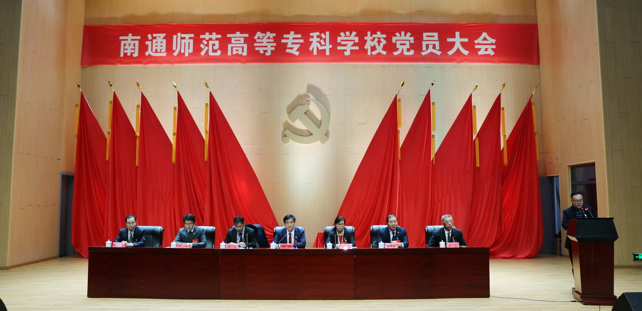 12月26日上午9:30,在庄严的国歌声中,南通师范高等专科学校党员大会在图文信息中心大报告厅隆重开幕。本次大会主题是:高举中国特色社会主义伟大旗帜,深入学习贯彻习近平新时代中国特色社会主义思想和党的十九大精神,凝心聚力,求实奋进,以立德树人为根本,以改革创新为动力,推进内涵发展,做精做优师范专业,做实做强非师范专业,为建设特色鲜明的本科师范院校而不懈奋斗。