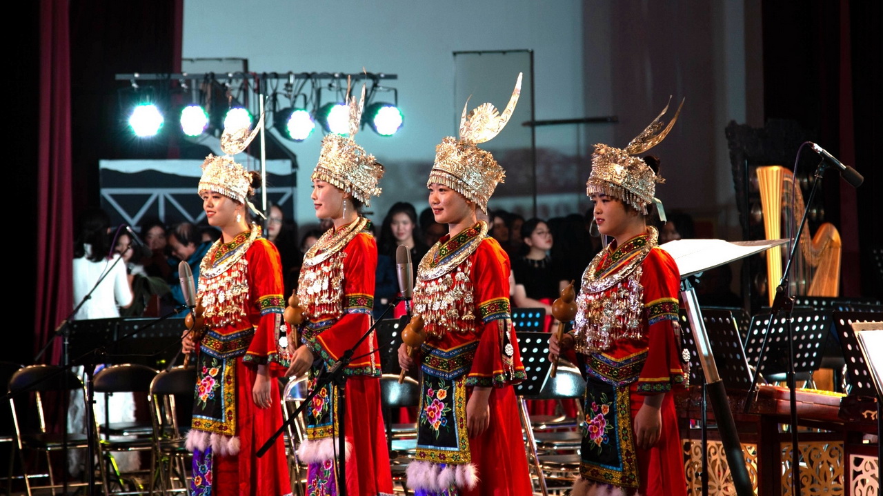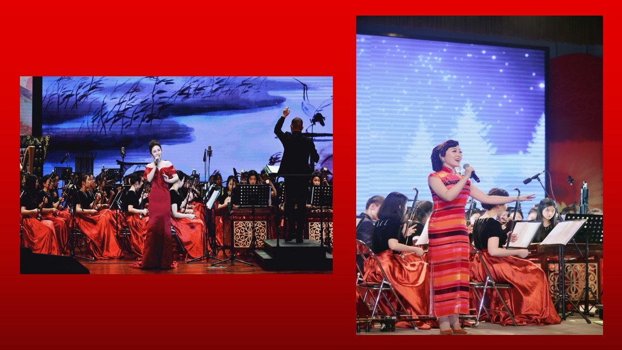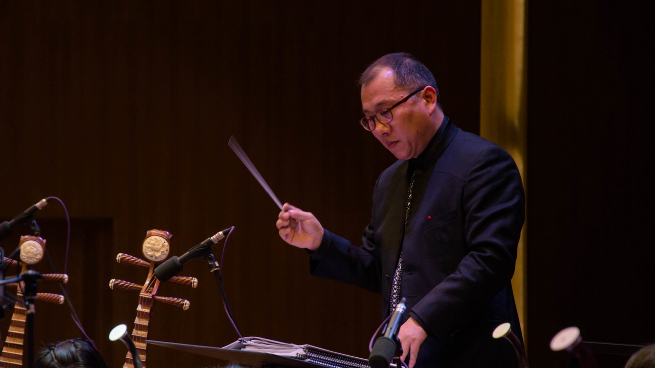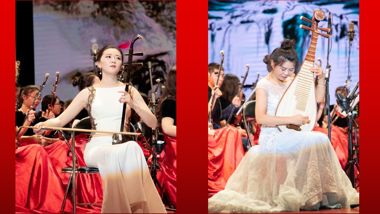 民族管弦乐《北京喜讯到边塞》拉开了本次活动的序幕,随后的《音诗—沙迪尔传奇》,乐声时而优雅舒缓,时而激越雄壮,具有浓厚的维吾尔族味道;琵琶协奏曲《云想·花想》源于李白的《清平乐》,乐队和琵琶相互交错的旋律缠绵婉转,如泣如诉,让人欲罢不能。施娓老师将琵琶“嘈嘈切切错杂弹,大珠小珠落玉盘”的颗粒感音色做到极致,使得原曲的唯美女性化旋律添上了盛唐时代的雍容华贵气质,余音袅袅,不绝于耳。