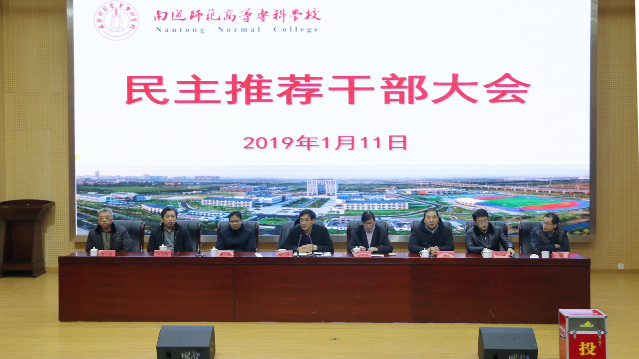 1月11日下午,学校党委在图文信息中心小报告厅举行民主推荐干部大会。校领导刘锋、朱月萍、潘健、孙国春、王志刚、都樾、郭庆、张松祥出席会议。