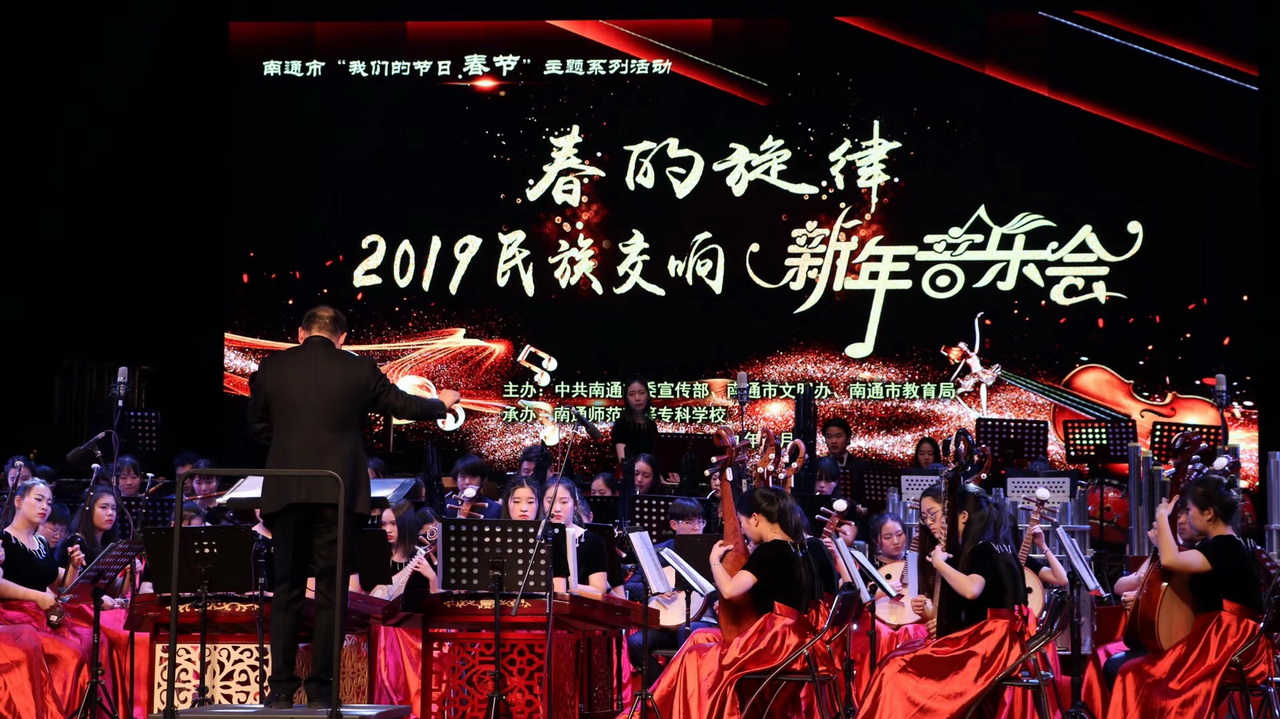 “春的旋律”民族交响新年音乐会由南通师范高等专科学校音乐系黄忠主任担任指挥,带领大学生民族乐团,特邀琵琶演奏家曹月,二胡演奏家召唤,用民族器乐诠释民族经典,加上人声的共同演绎,奏响了一段段春的旋律。