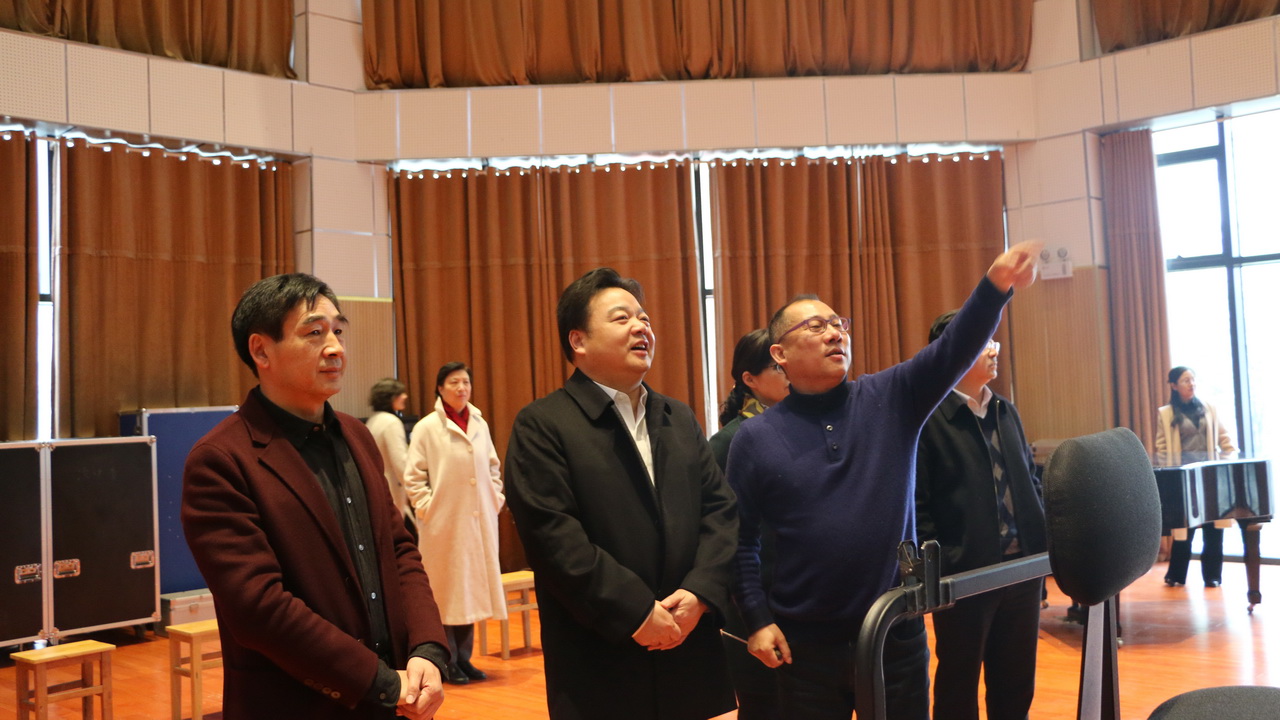 3月6日上午,市委常委、宣传部长陆卫东,宣传部副部长王一鸣,市教育局机关党委书记倪健,市文广新局副局长王霞等一行莅临我校考察调研市级民族交响乐团筹备建设工作。学校党委书记刘锋、校长朱月萍、副校长都樾及音乐舞蹈学院党政负责人参加调研。